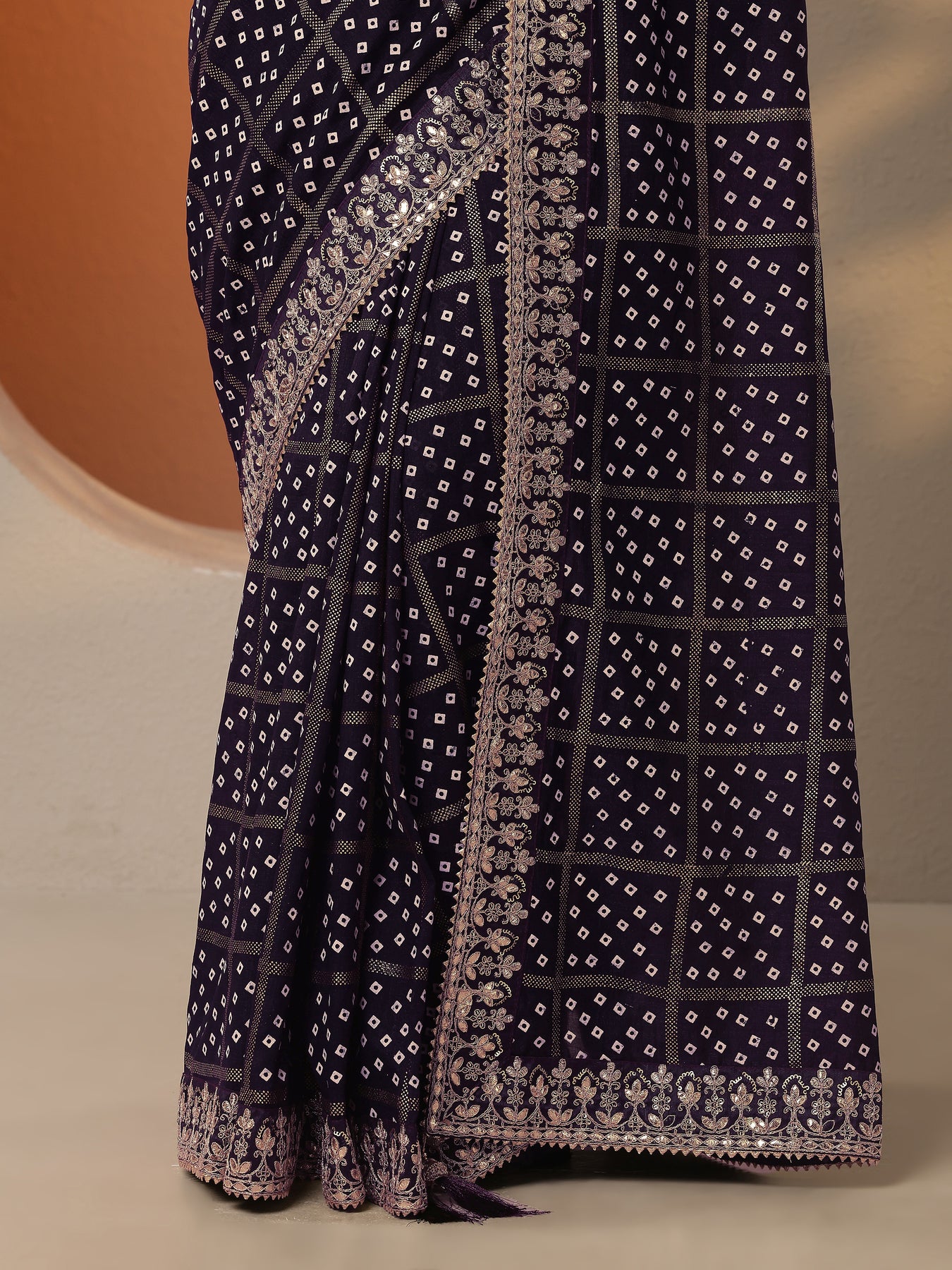 Purple Bandhani Printed Silk Blend Saree With Unstitched Blouse Piece