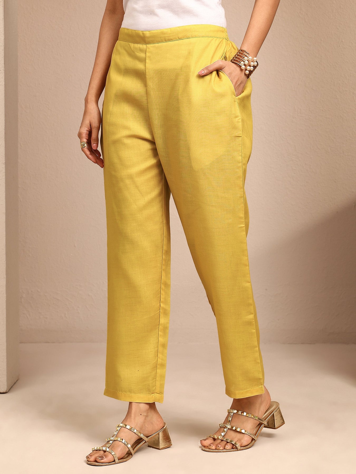 Our 3-piece yellow multi cotton blend straight-fit kurta set features a round neckline, flared sleeves, and statement yoke. Complemented with straight pants with a partially elasticated waistband and 2 pockets, and a printed dupatta. Adorned with floral printed, this style is perfect for festive occasions.