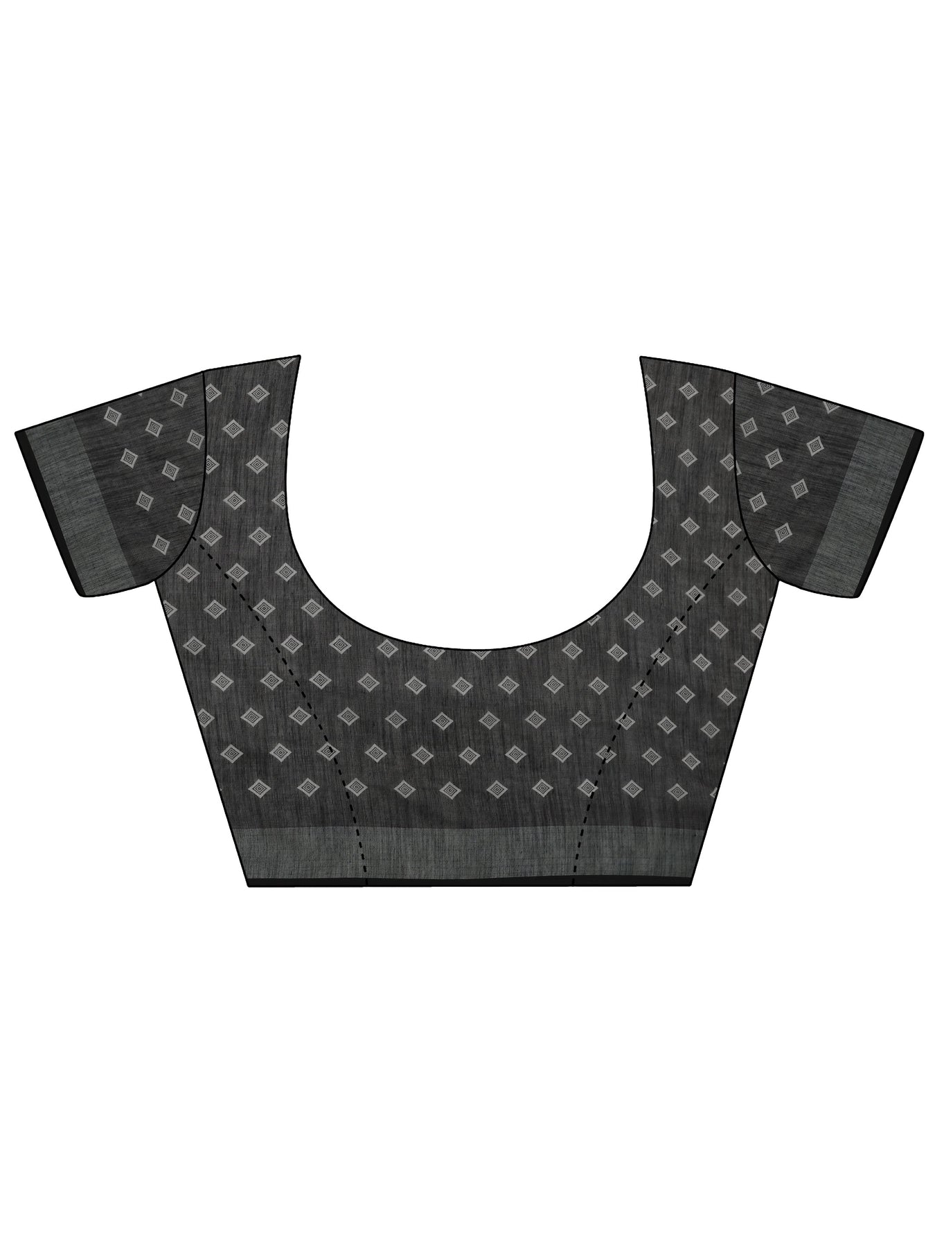 Black Printed Cotton Blend Saree With Unstitched Blouse Piece