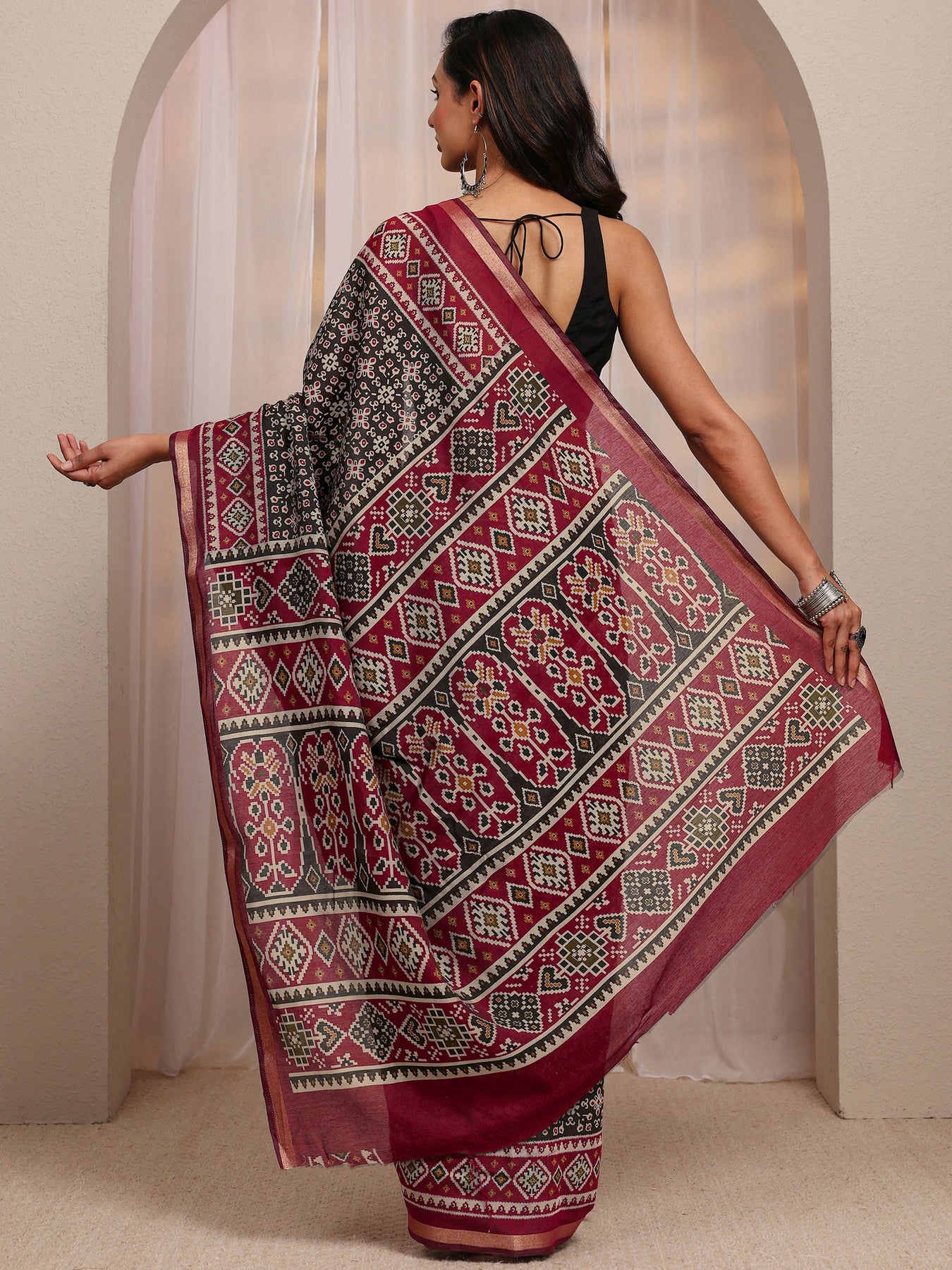 Black Ethnic Motif Printed Silk Blend Saree With Unstitched Blouse Piece