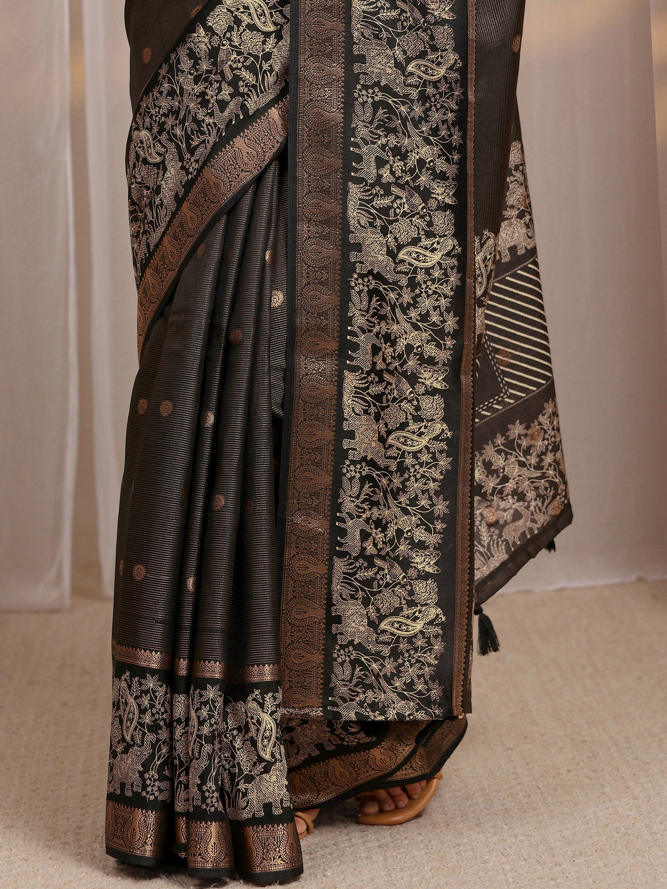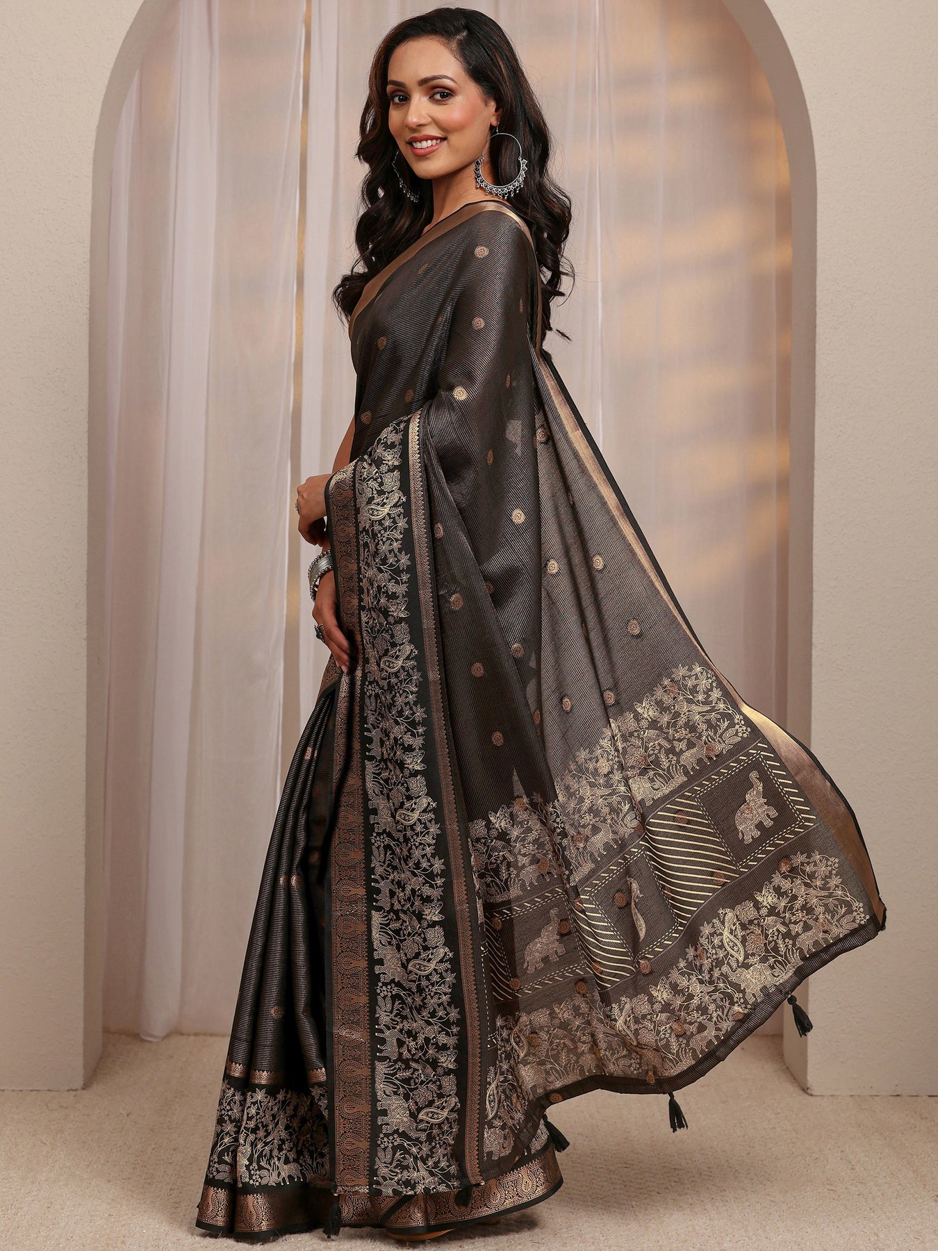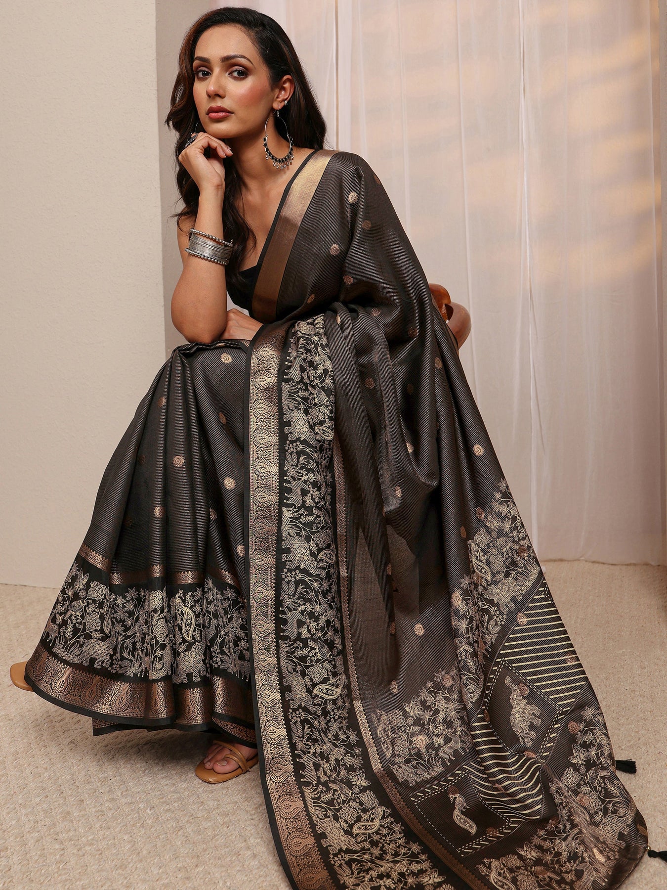 Black Ethnic Motif Woven Design Silk Blend Saree