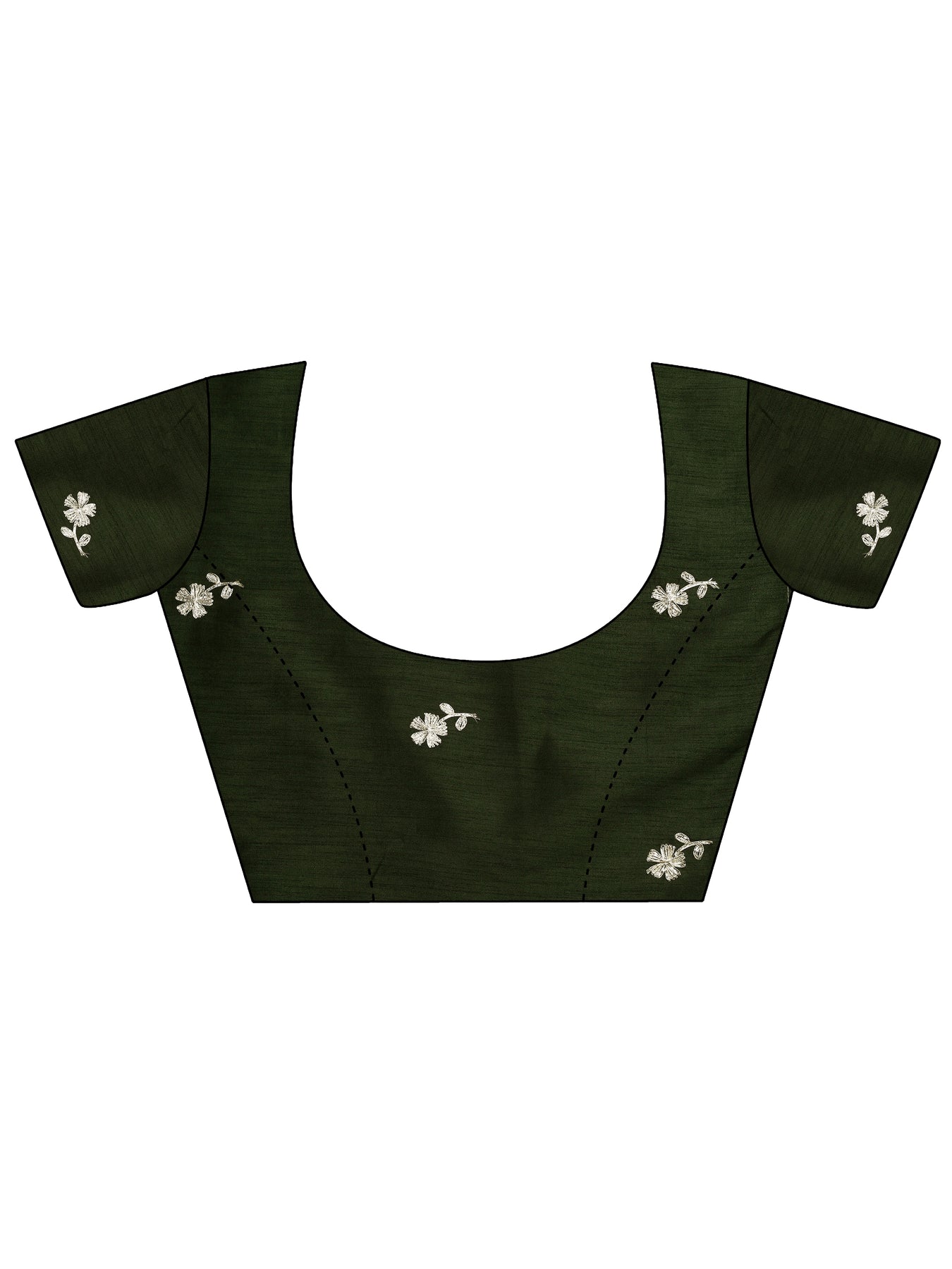 Olive Bandhani Printed Chinon Saree With Unstitched Blouse Piece