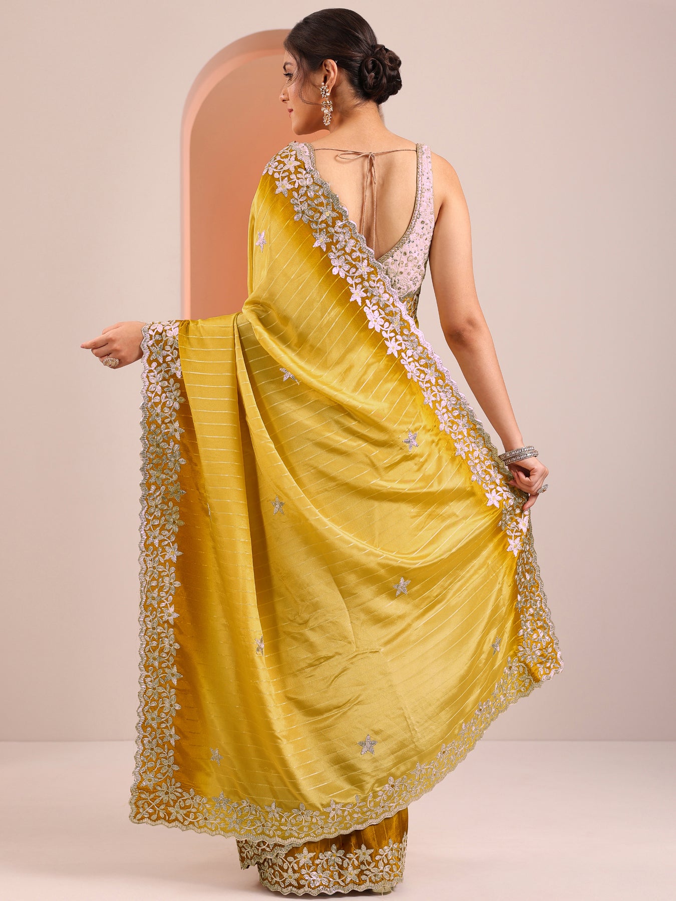 Yellow Embellished Crepe Saree With Unstitched Blouse Piece