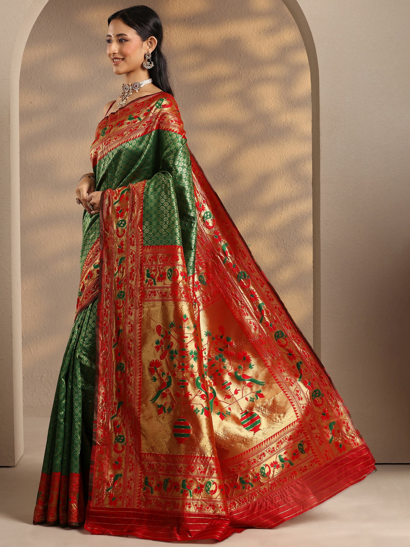 Green Woven Design Silk Blend Banarasi Saree With Unstitched Blouse Pi