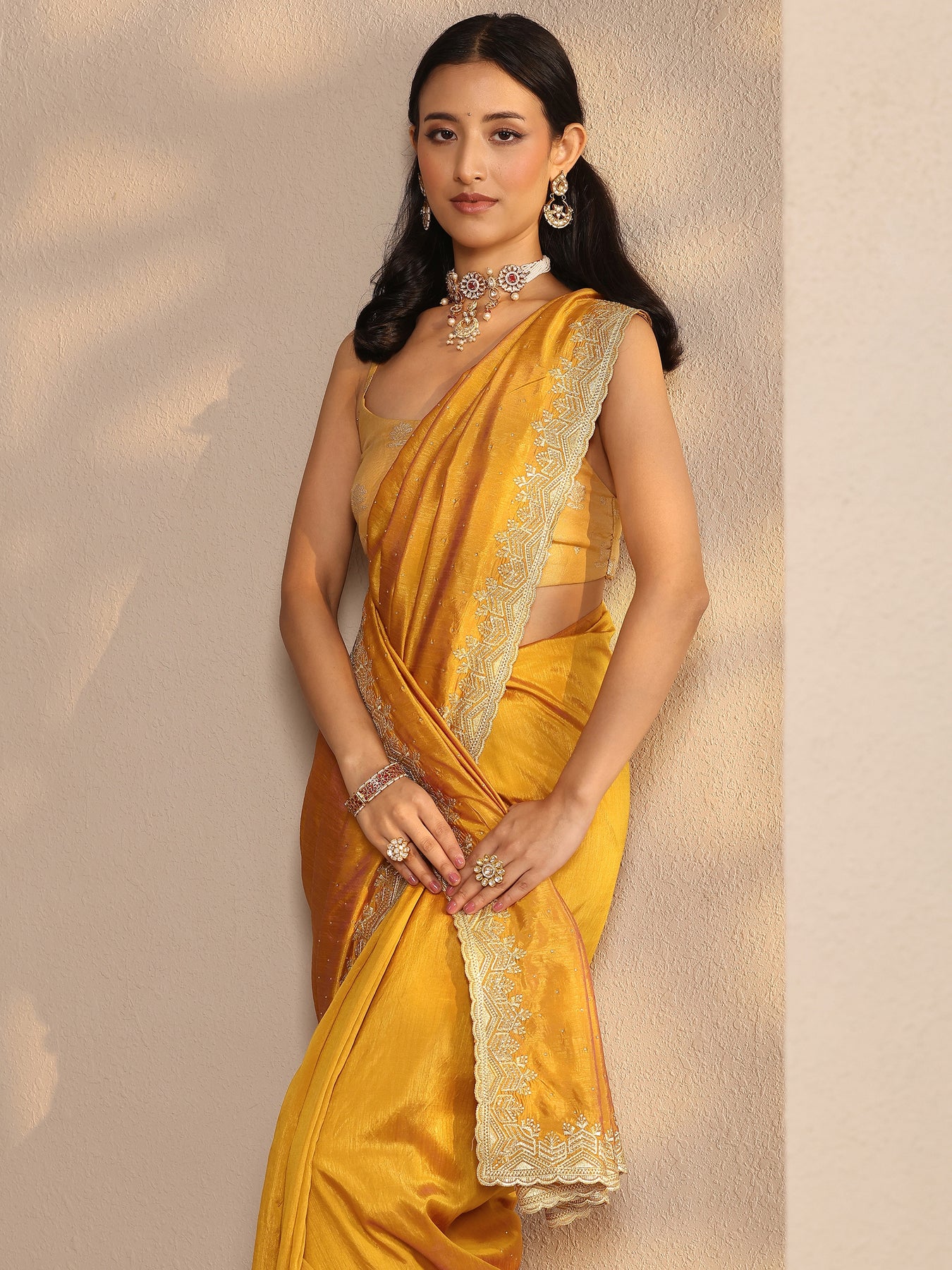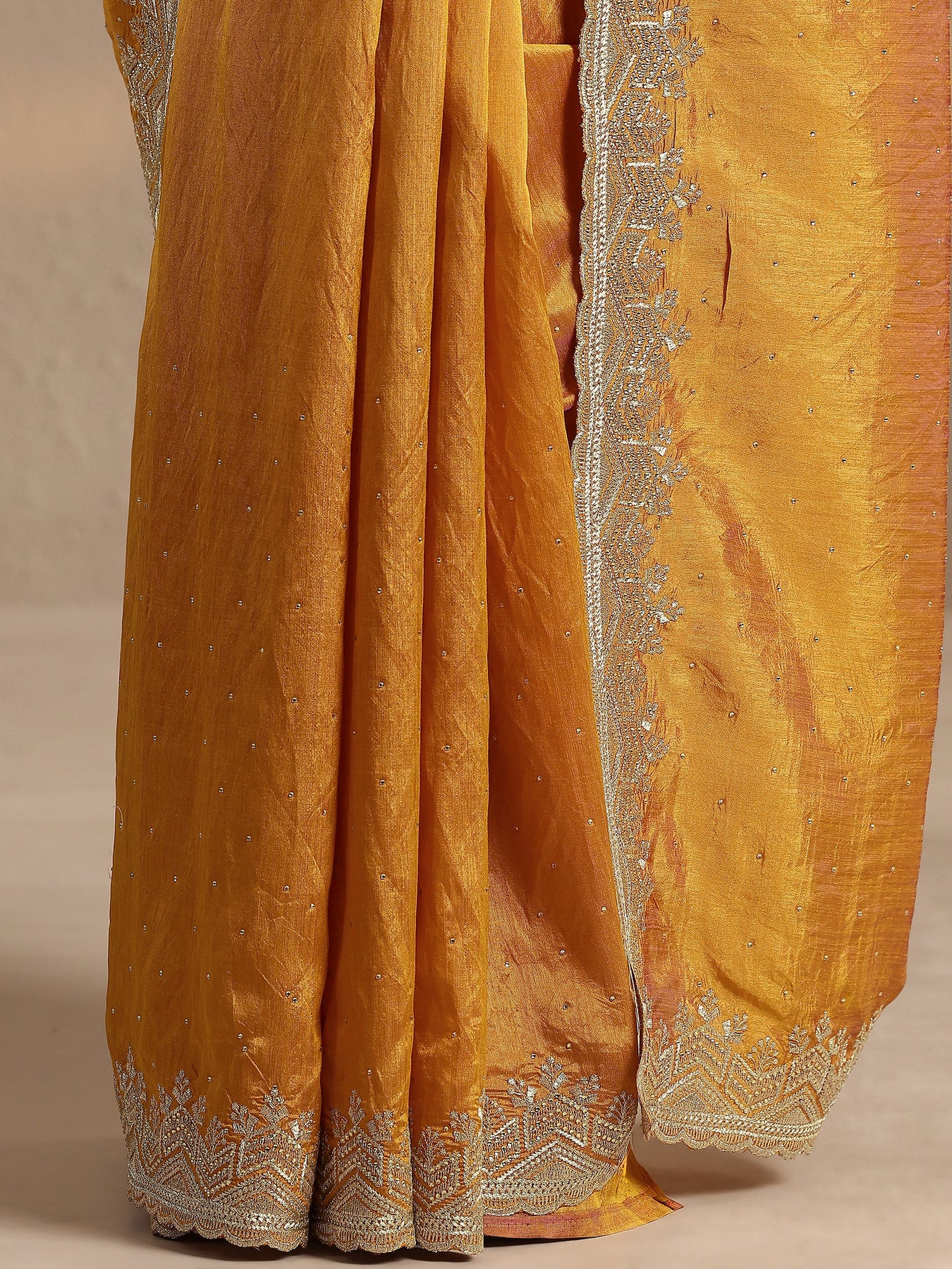 Mustard Embellished Silk Blend Saree With Unstitched Blouse Piece