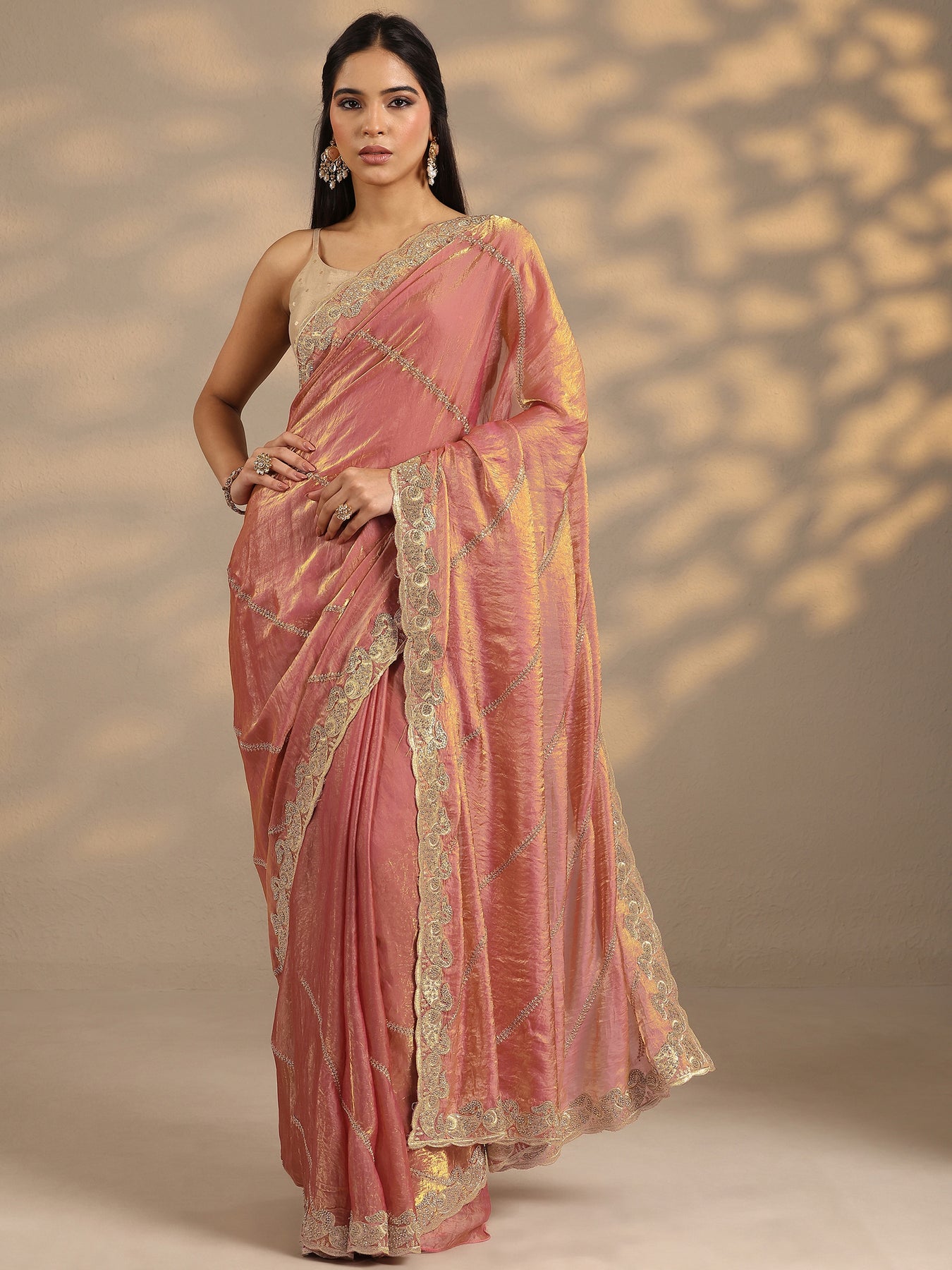 Peach Leheriya Embellished Silk Blend Saree With Unstitched Blouse Pie