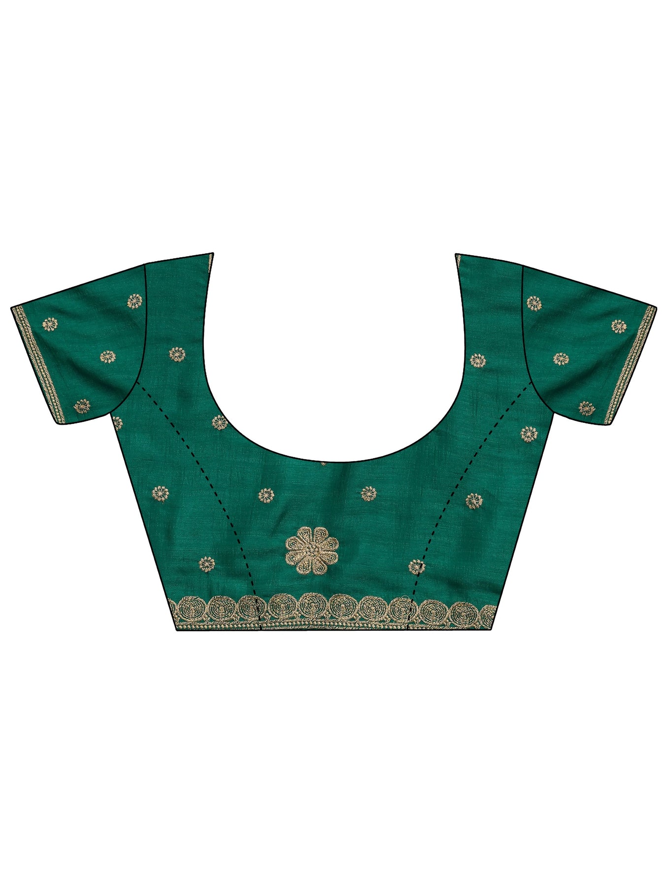 Green Embroidered Silk Blend Saree With Unstitched Blouse Piece