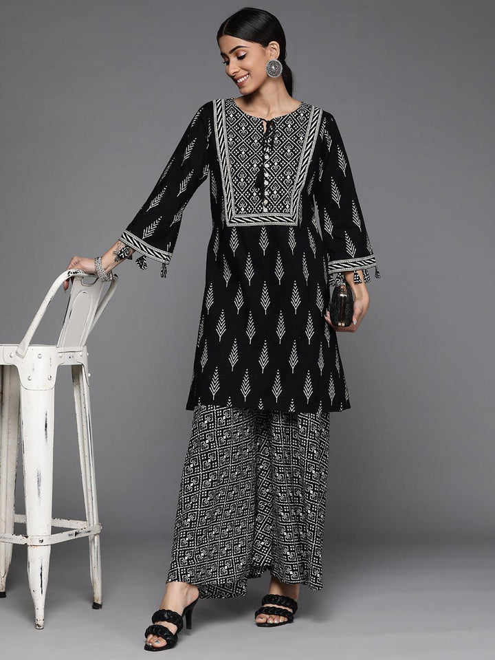 Black Printed Cotton Kurta Set - ShopLibas