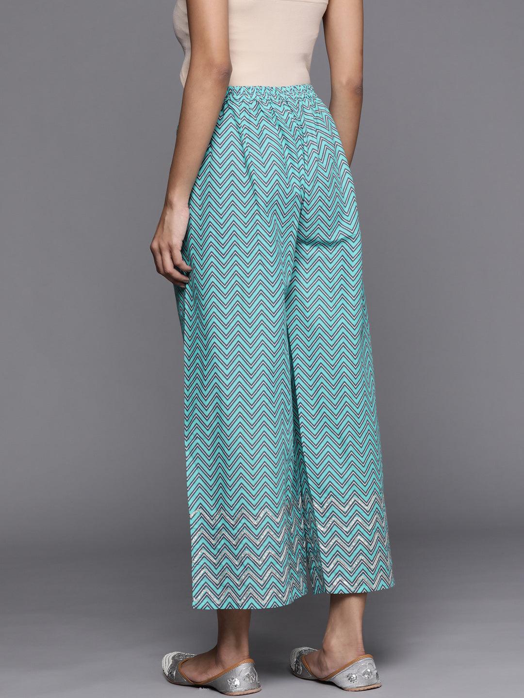 Blue Printed Cotton Palazzo - ShopLibas