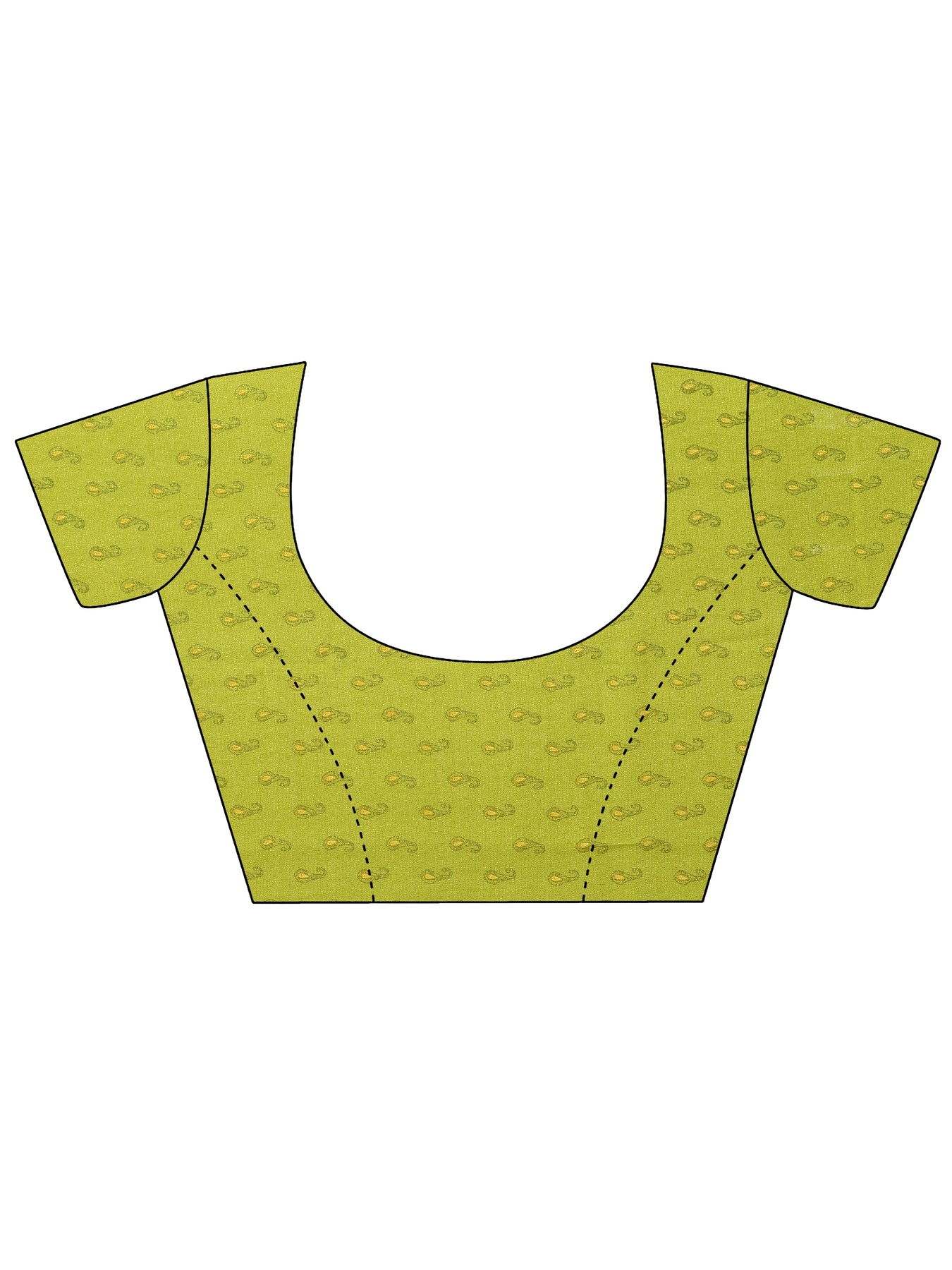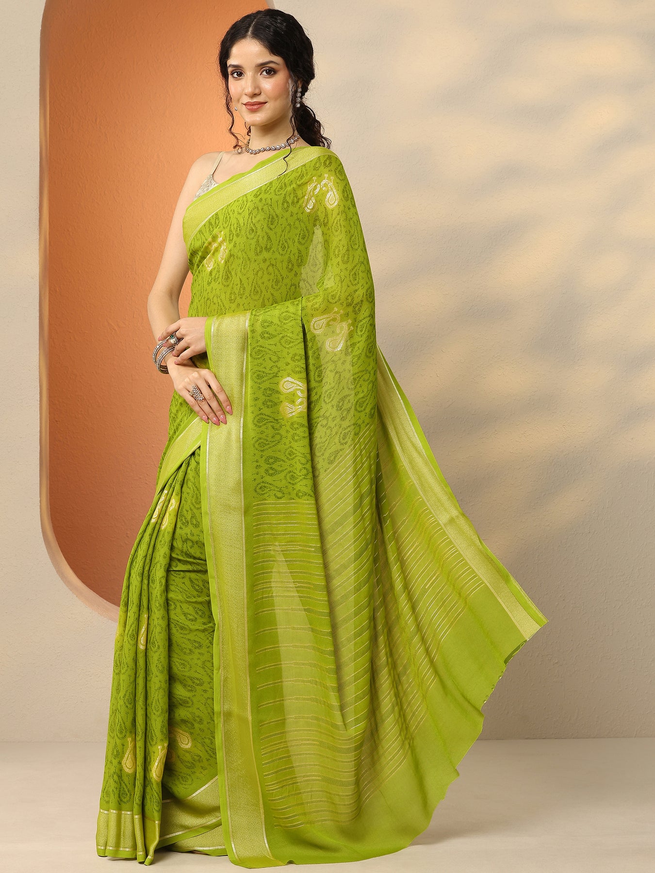 Green Paisley Printed Georgette Saree With Unstitched Blouse Piece