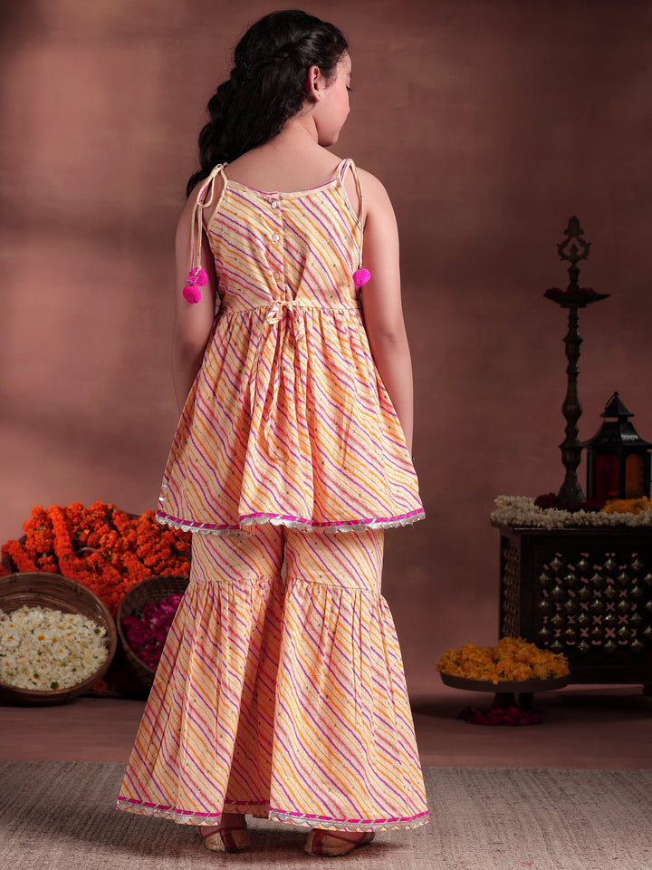 Kids Yellow Printed Cotton A-Line Kurta With Sharara