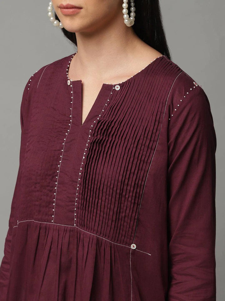 Buy Maroon Solid Cotton Kurti - 9110-XS | Libas Ethnic Wear Online