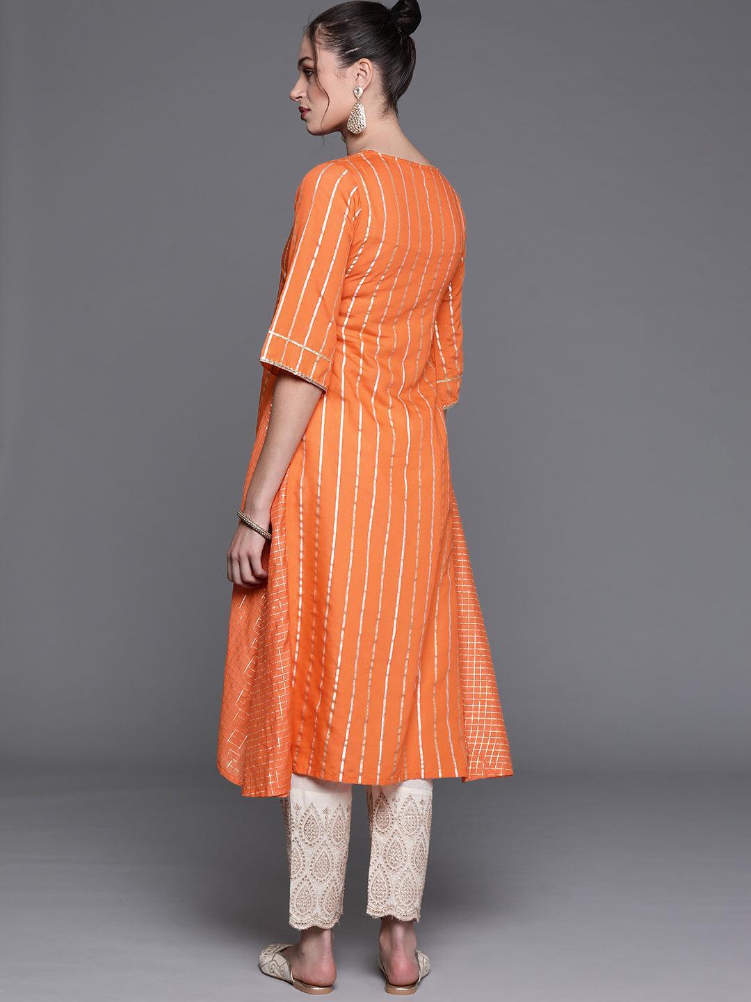 Orange Woven Design Chanderi Silk Kurta
