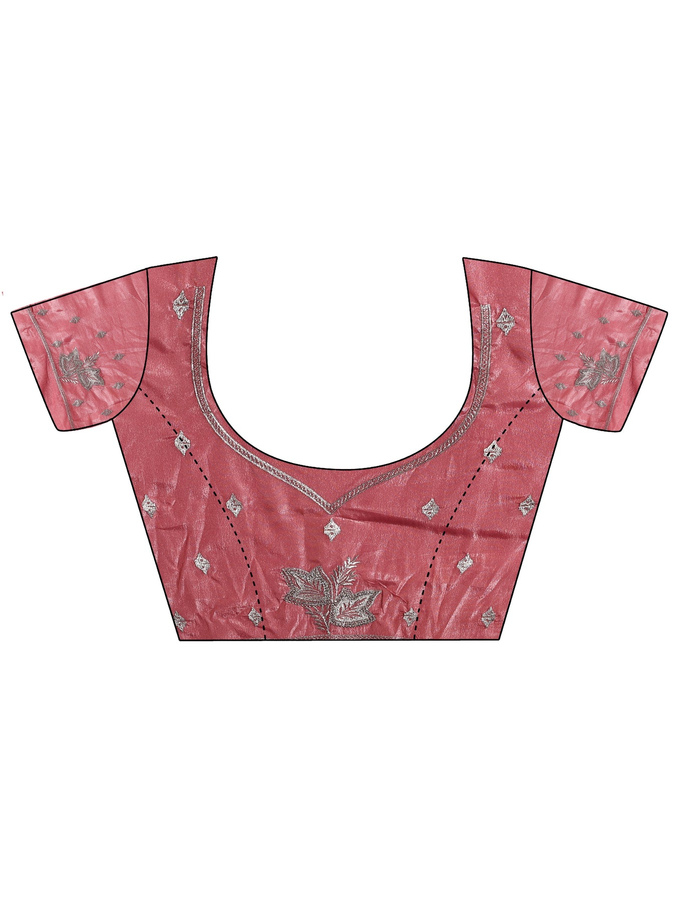 Peach Embellished Silk Blend Saree With Unstitched Blouse Piece