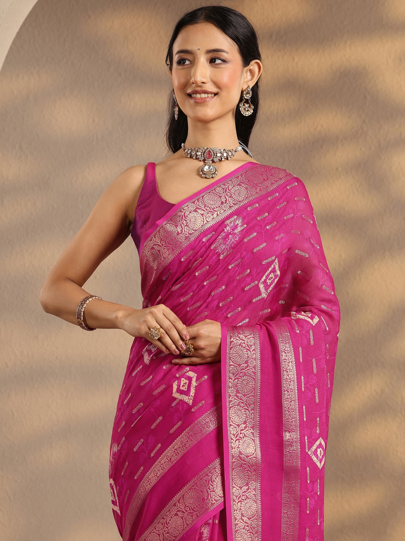 Pink Woven Design Silk Blend Saree With Unstitched Blouse Piece