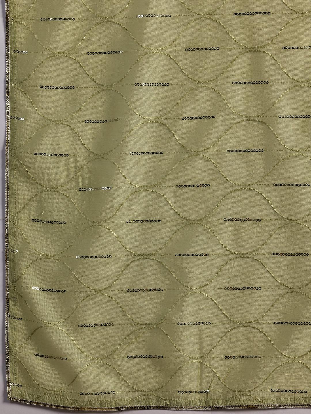 Plus Size Green Yoke Design Silk Blend Straight Kurta With Trousers & Dupatta - ShopLibas