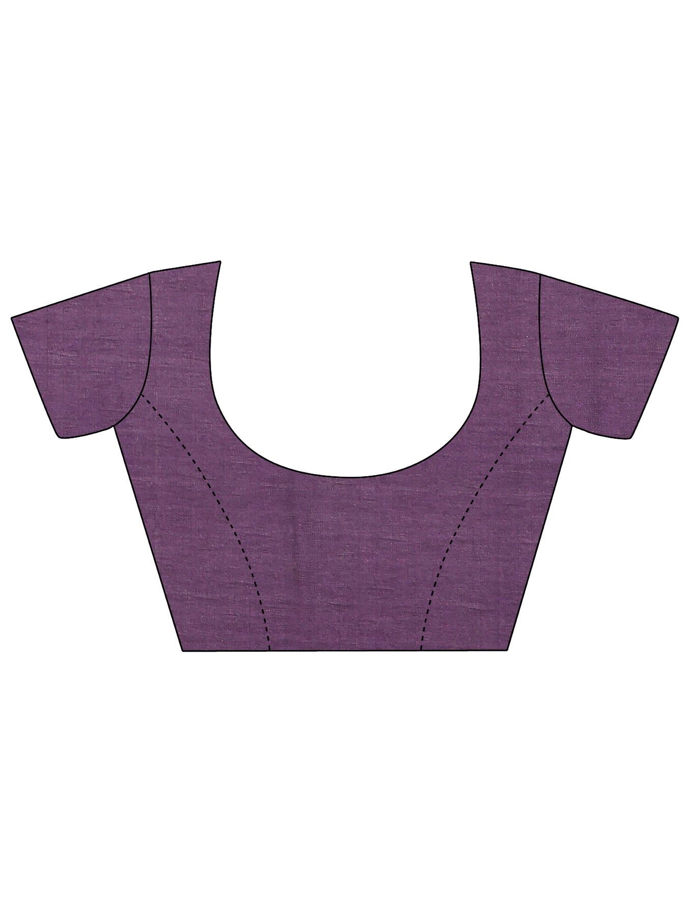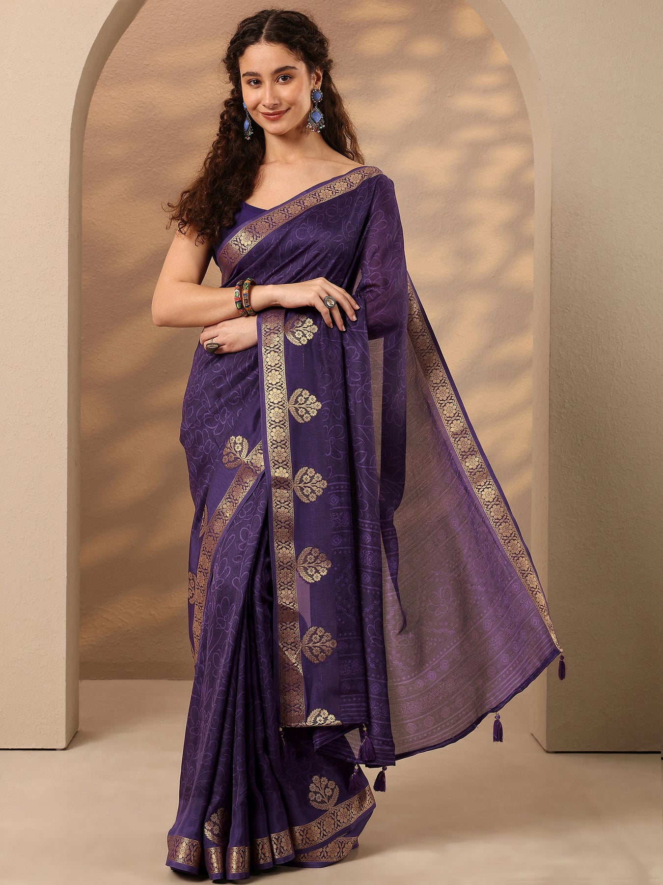 Purple Printed Silk Blend Saree With Unstitched Blouse Piece
