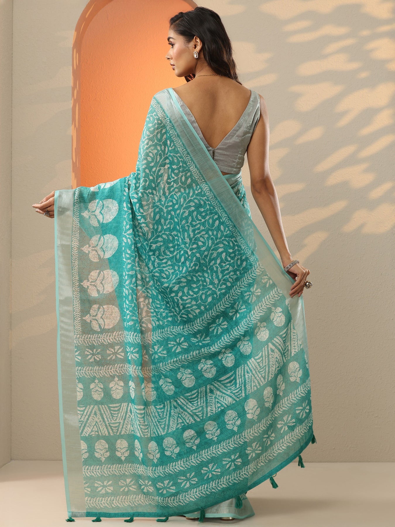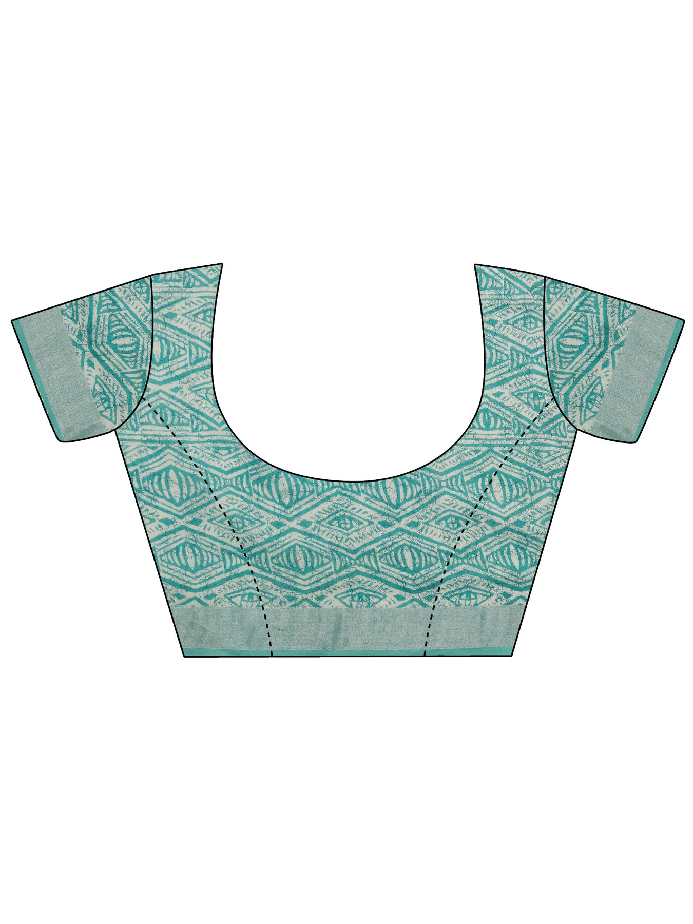 Our Turquoise Blue Printed Cotton Blend Saree Features Captivating Top Pattern Print. Complemented With An Unstitched Blouse Piece. This Charming Saree Is Perfect For Festive Wear.