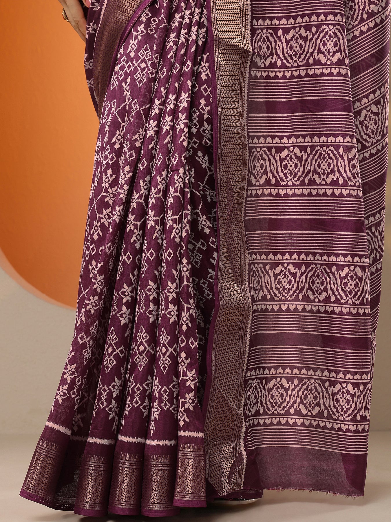 Burgundy Printed Silk Blend Saree With Unstitched Blouse Picece