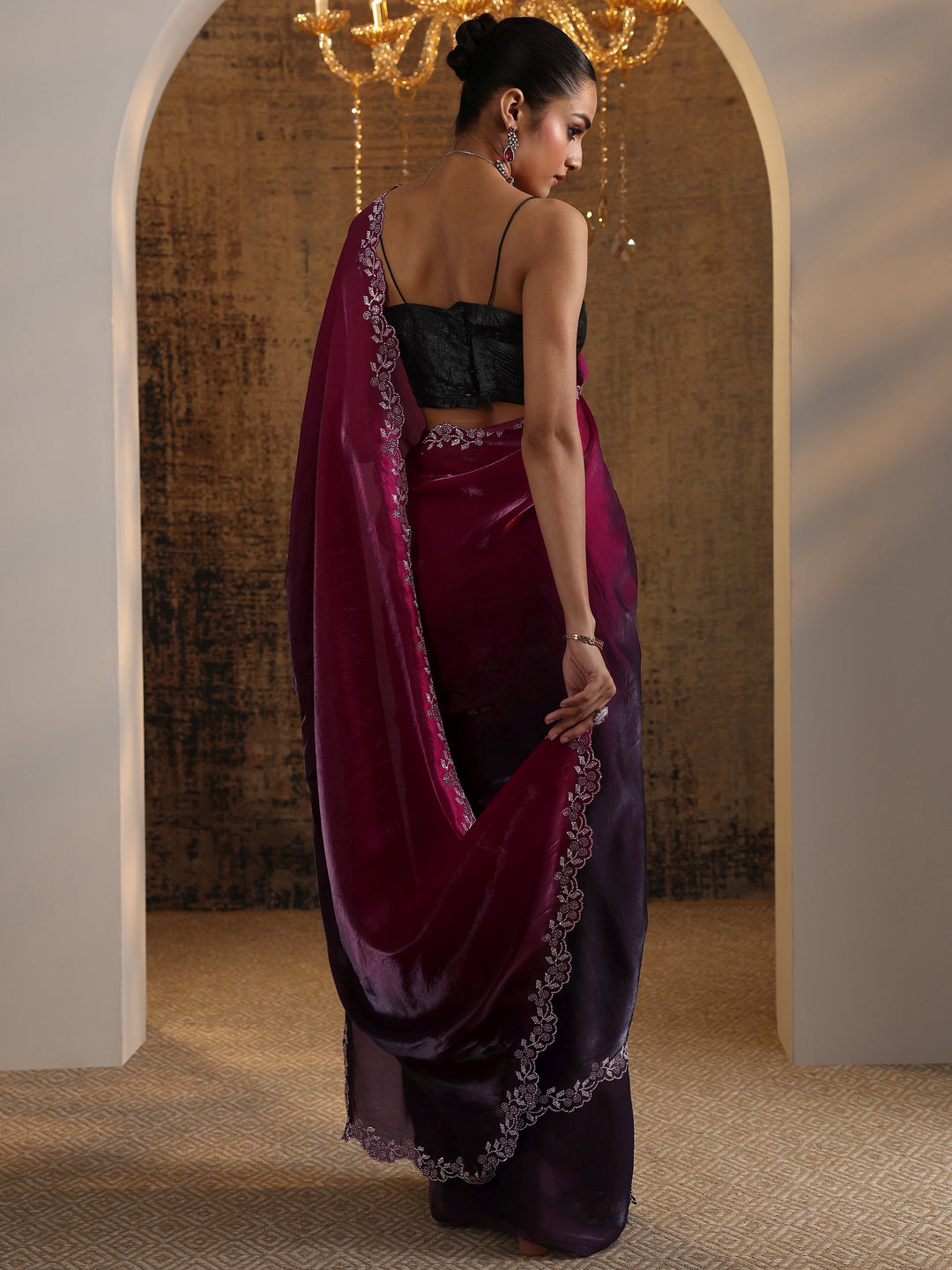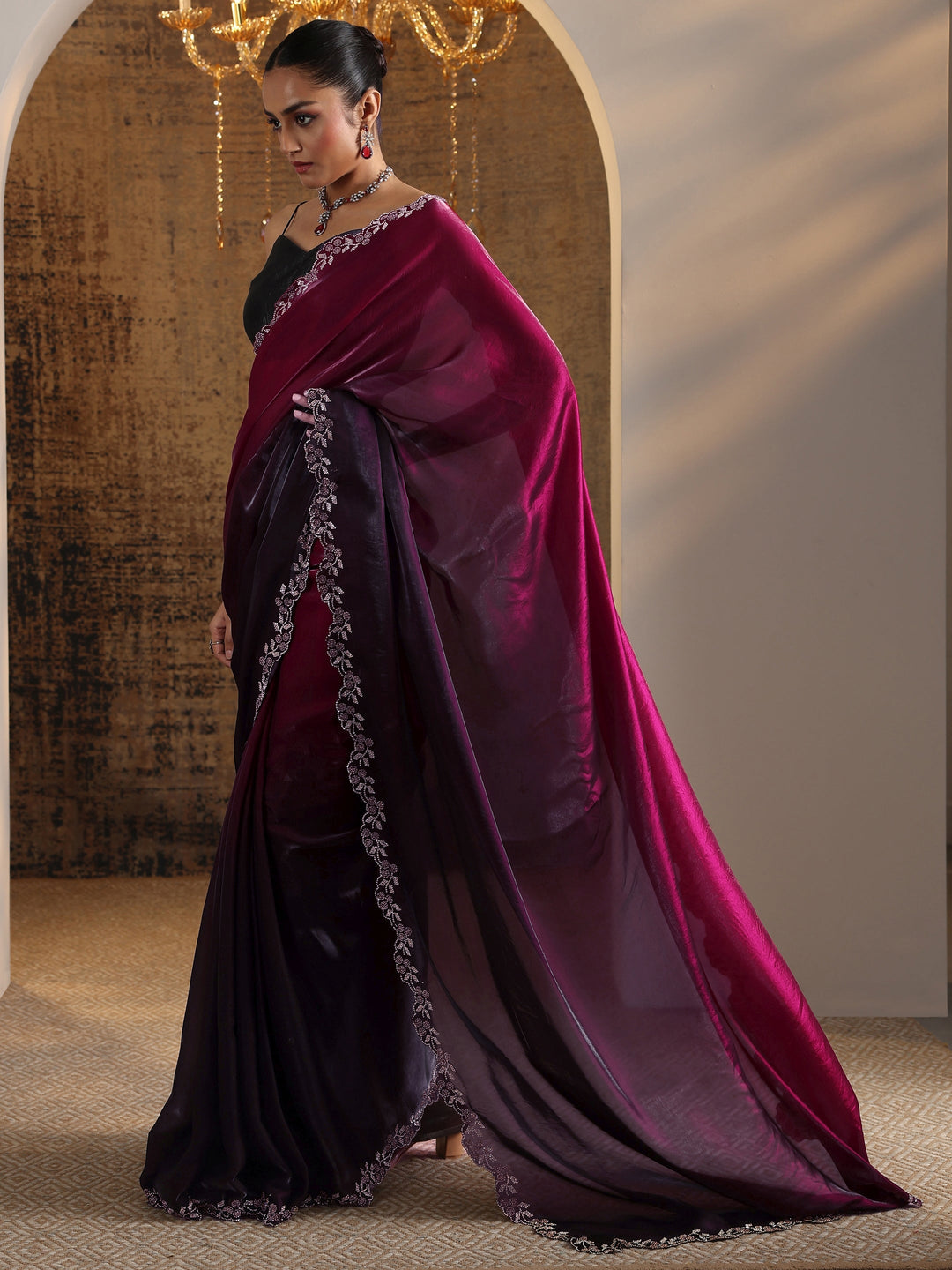 Our Magenta Satin Saree Features Captivating Solid Print. Complemented With A Unstitched Blouse Piece. This Charming Saree Is Perfect For Festive Wear.