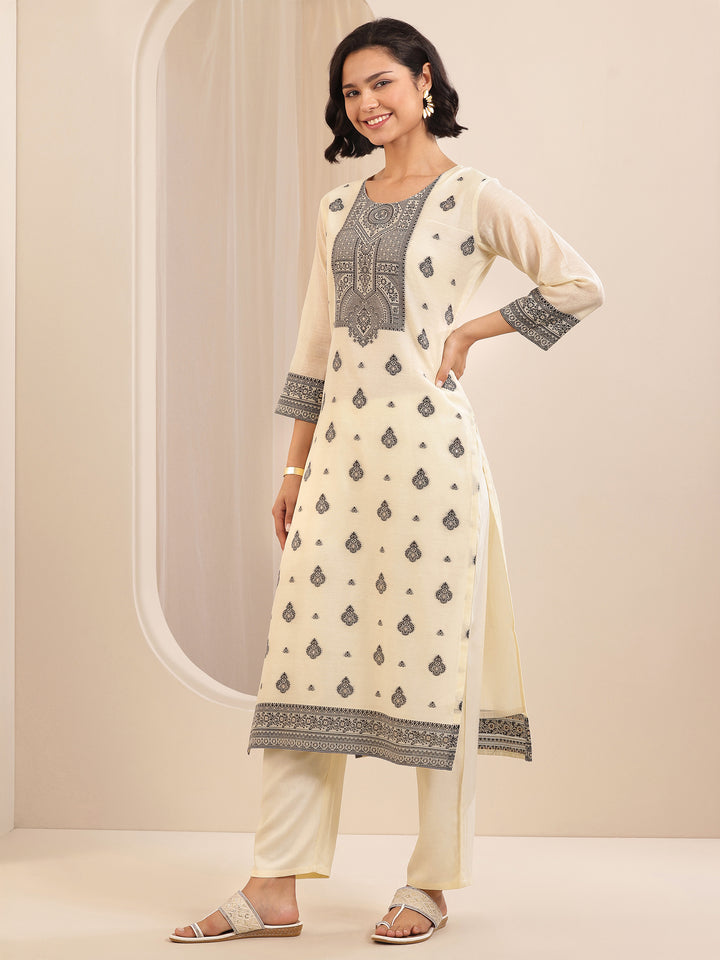 Cream Self Design Chanderi Silk Straight Suit Sets With Dupatta