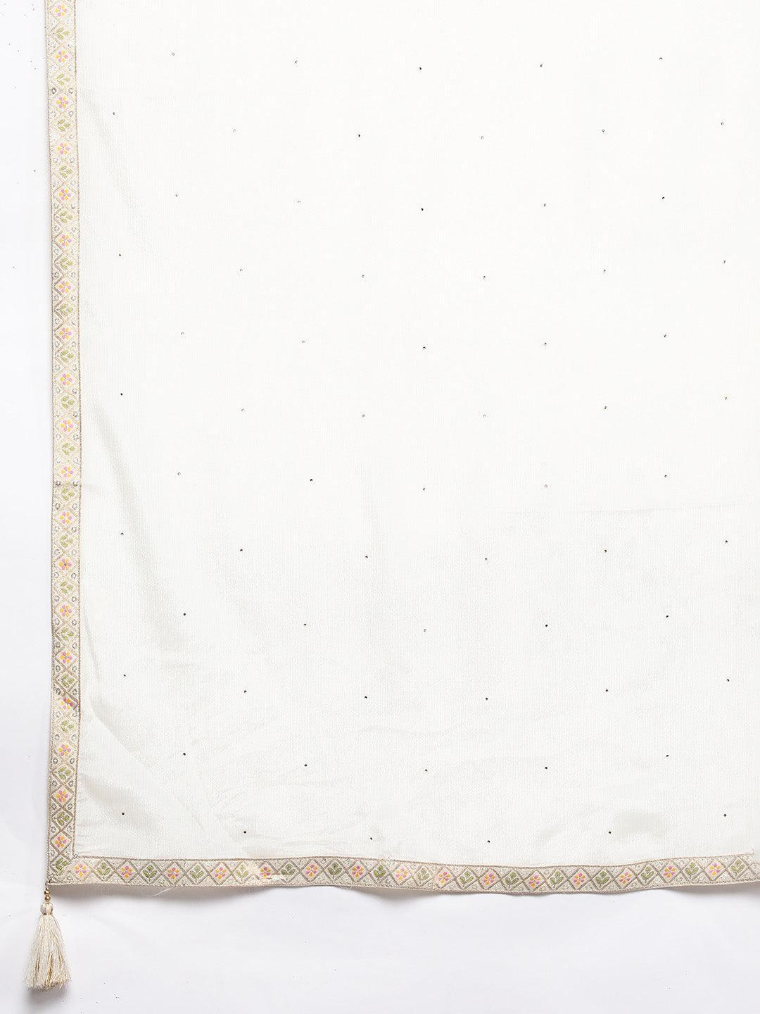 Cream Woven Design Silk Blend Straight Kurta With Trousers & Dupatta