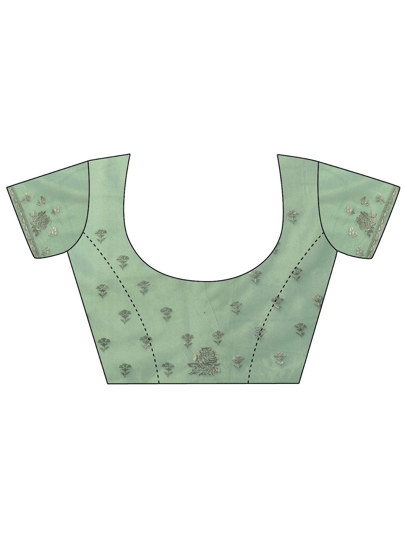 Green Embroidered Nylon Saree With Unstitched Blouse Piece