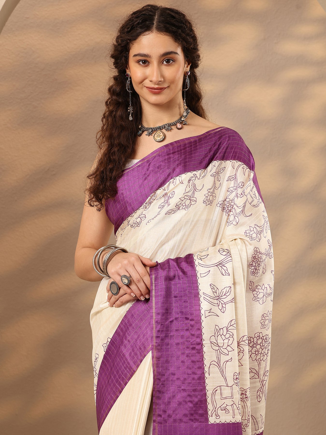 Our Grey Printed Silk Blend Saree Features Captivating Floral. Complemented With An Unstitched Blouse Piece. This Charming Saree Is Perfect For Festive Occasions.