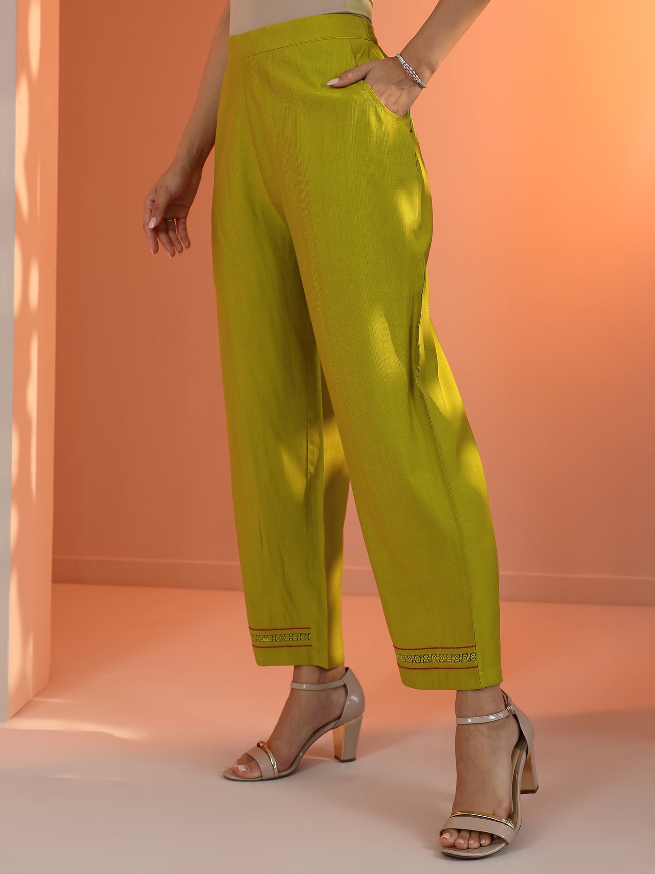 Our 3-piece yellow silk blend kurta set features a straight-fit kurta with a V-neckline, regular sleeves, and statement yoke. Complemented with lining and straight pants with a partially elasticated waistband and 2 pockets, and a printed dupatta. Adorned with floral embroidered accents, this style is perfect for semi festive wear.
