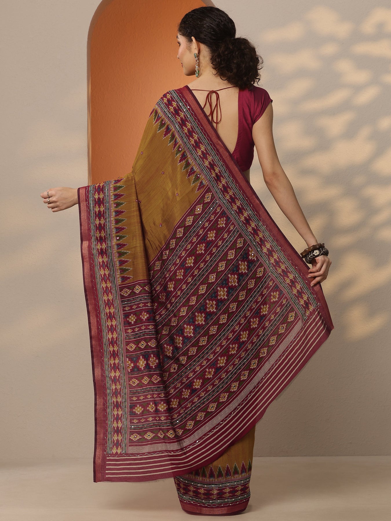 Mustard Solid Silk Blend Saree With Unstitched Blouse Piece