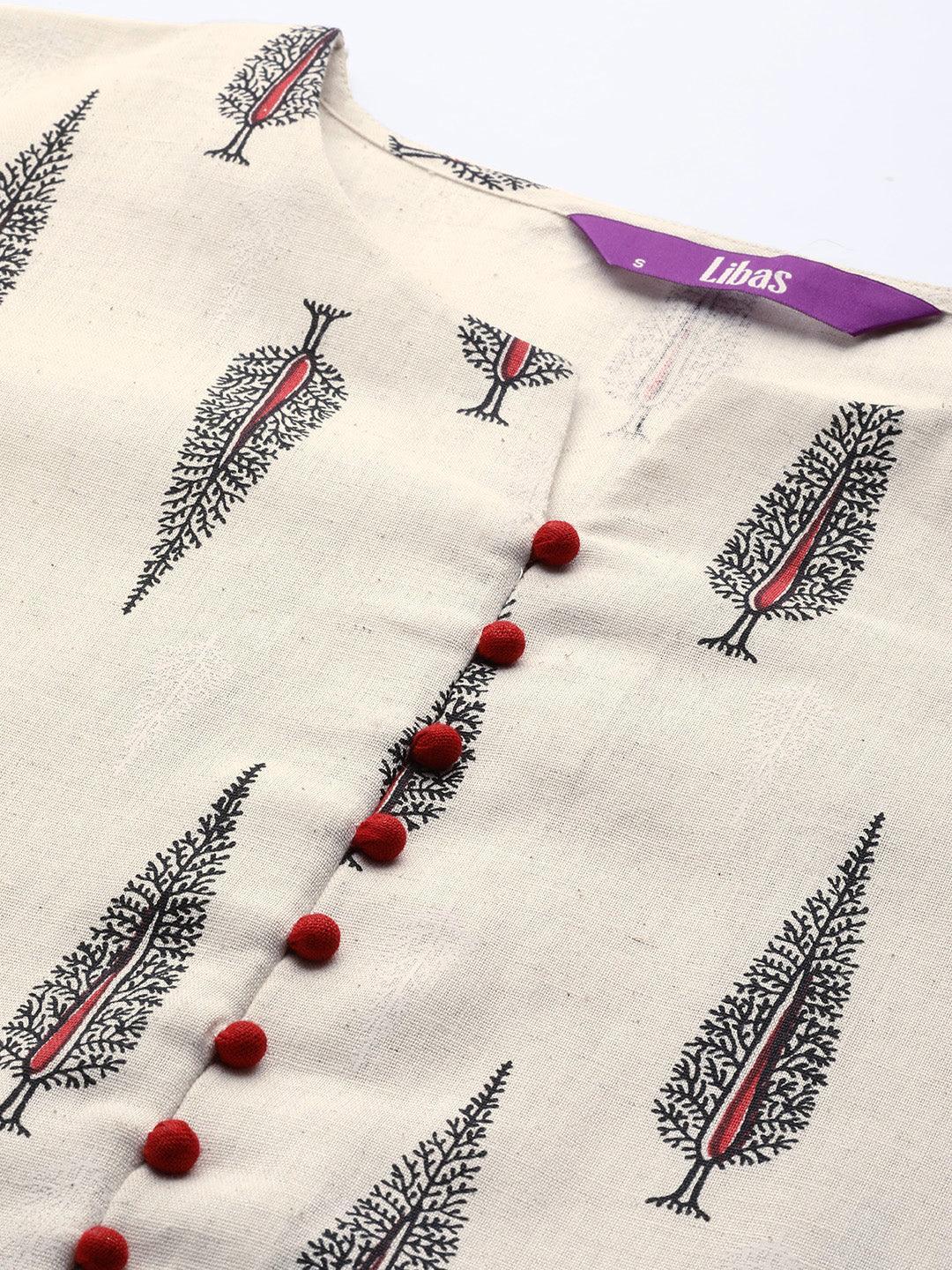 Buy Off White Printed Cotton Kurta - 23347O-XXL | Libas Ethnic Wear Online