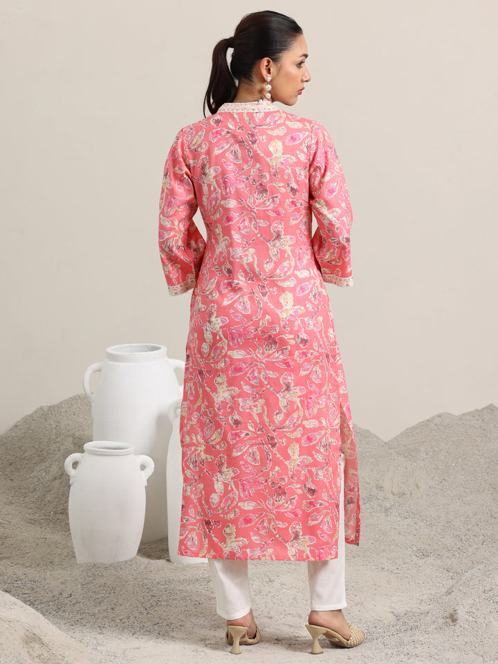 Pink Printed Cotton Blend Straight Kurta