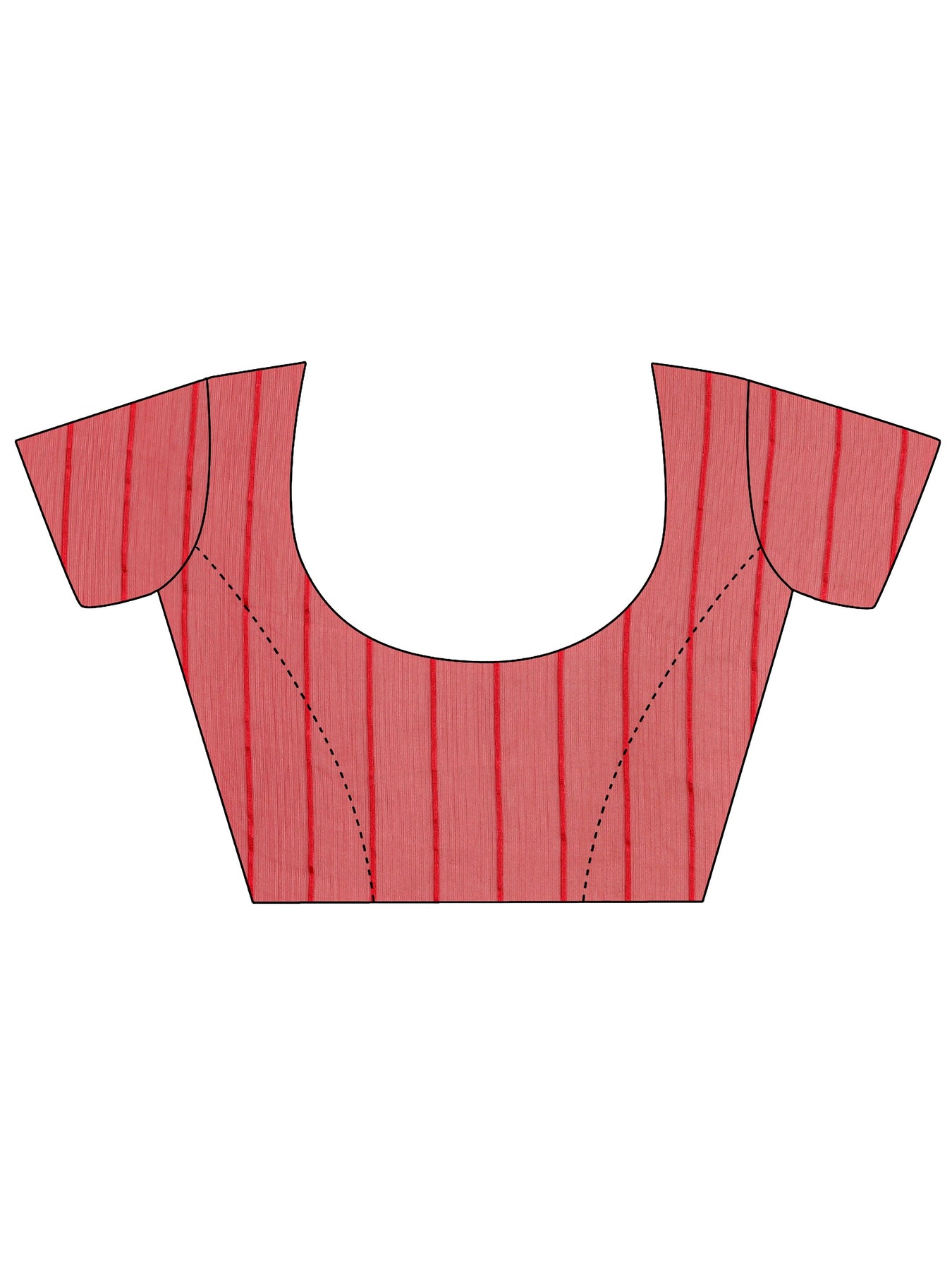 Pink Striped Embellished Silk Blend Saree With Unstitched Blouse Piece