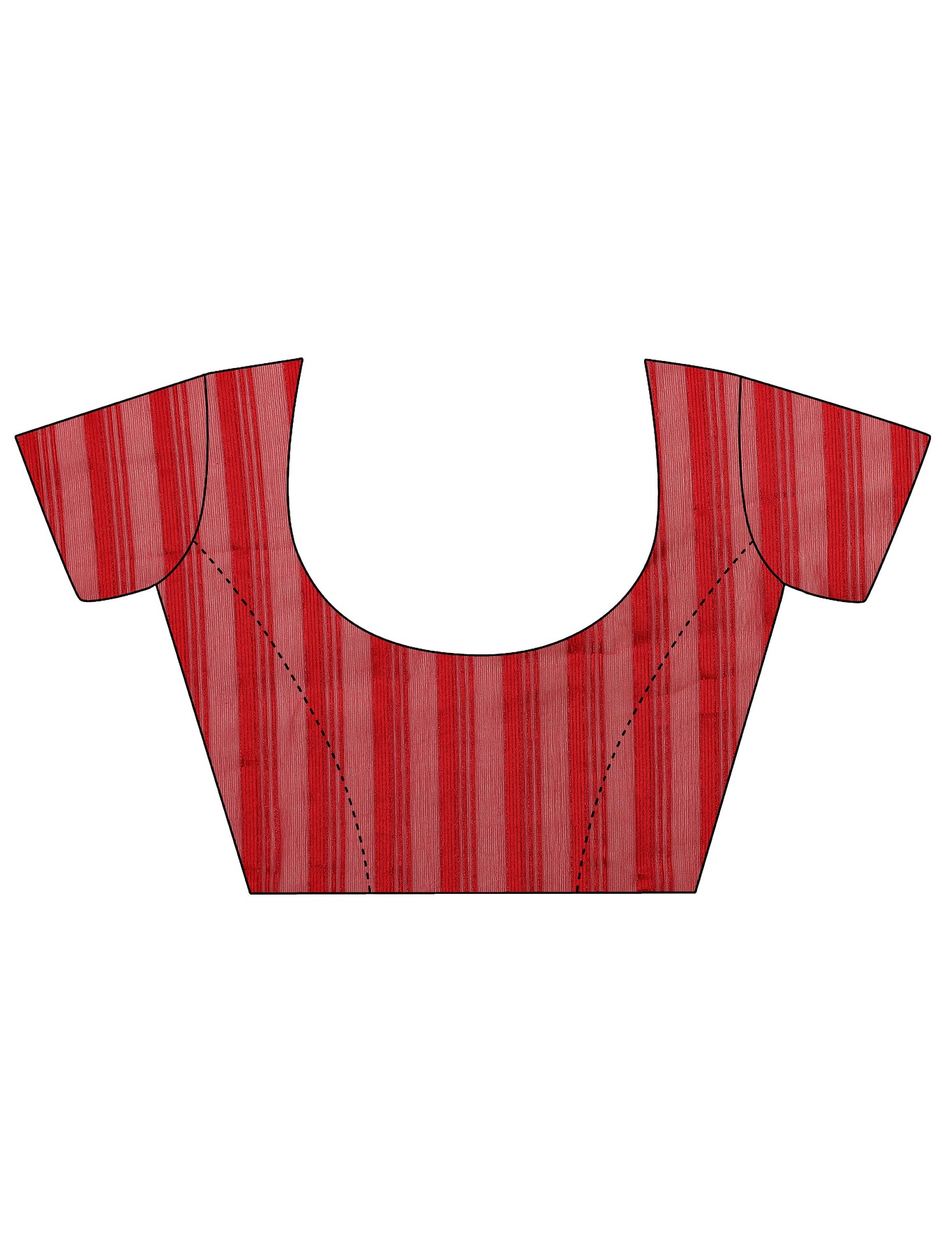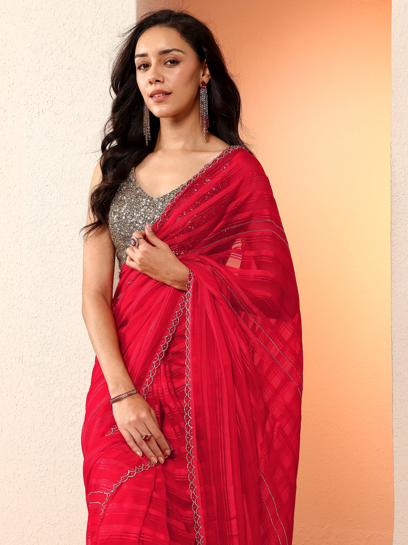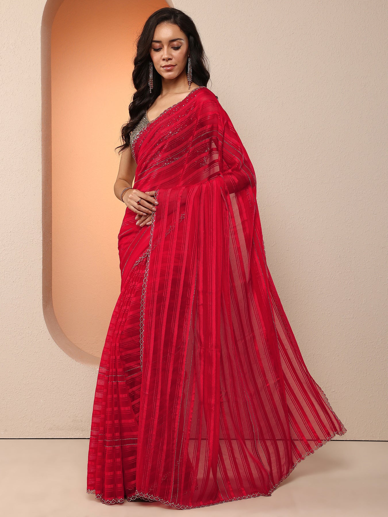 Red Woven Design Chinon Saree With Unstitched Blouse Piece