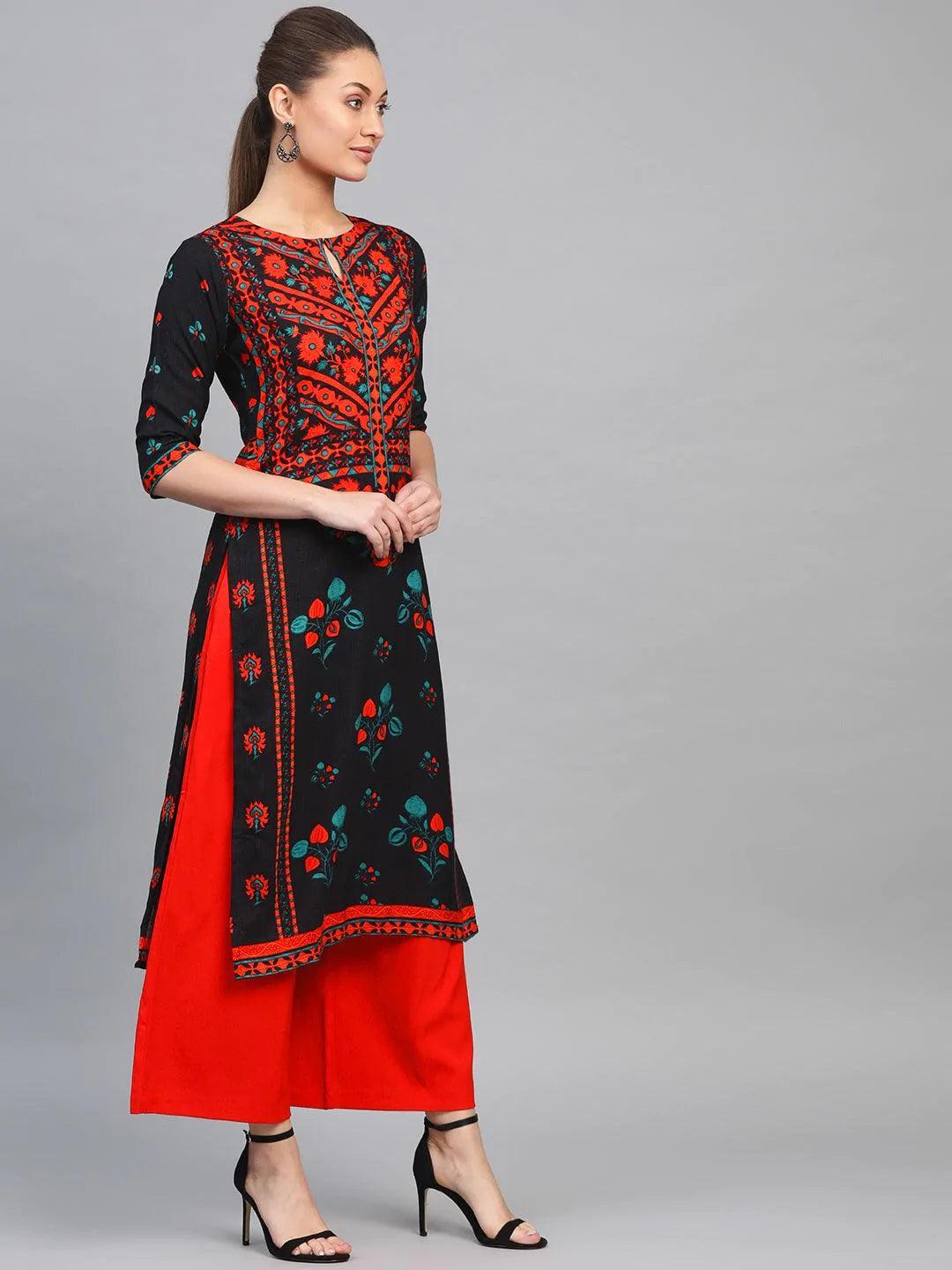 Black Printed Rayon Kurta - ShopLibas