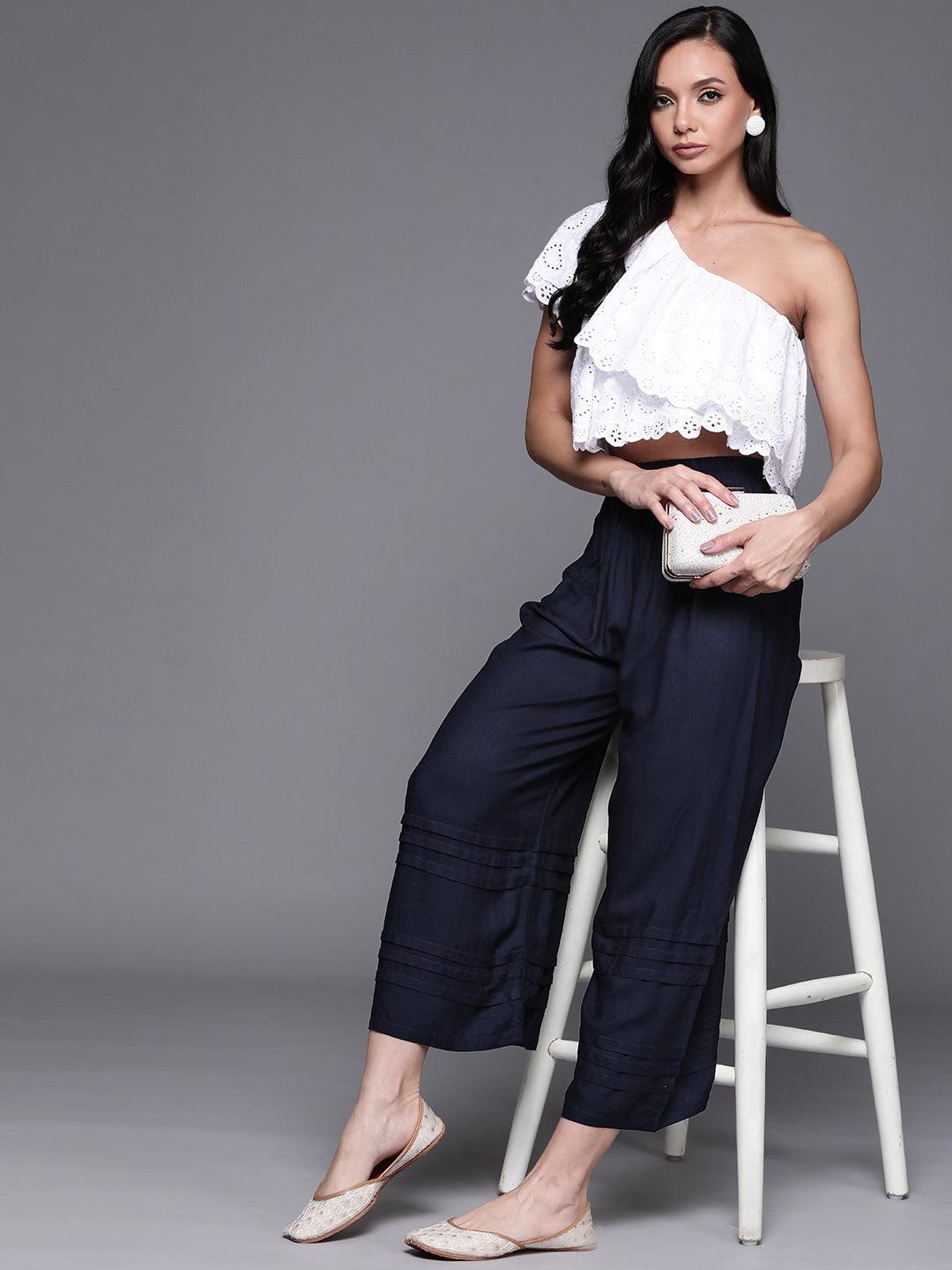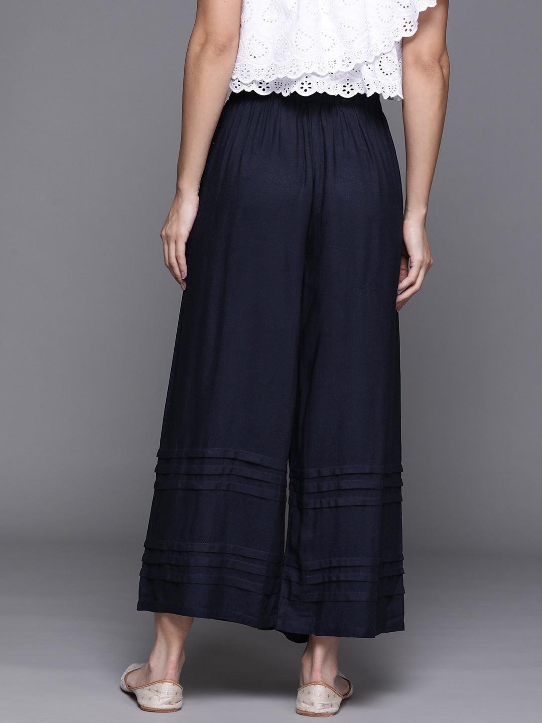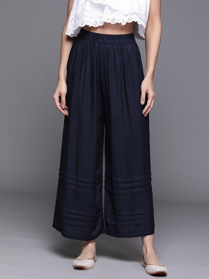 Blue Solid Rayon Palazzos