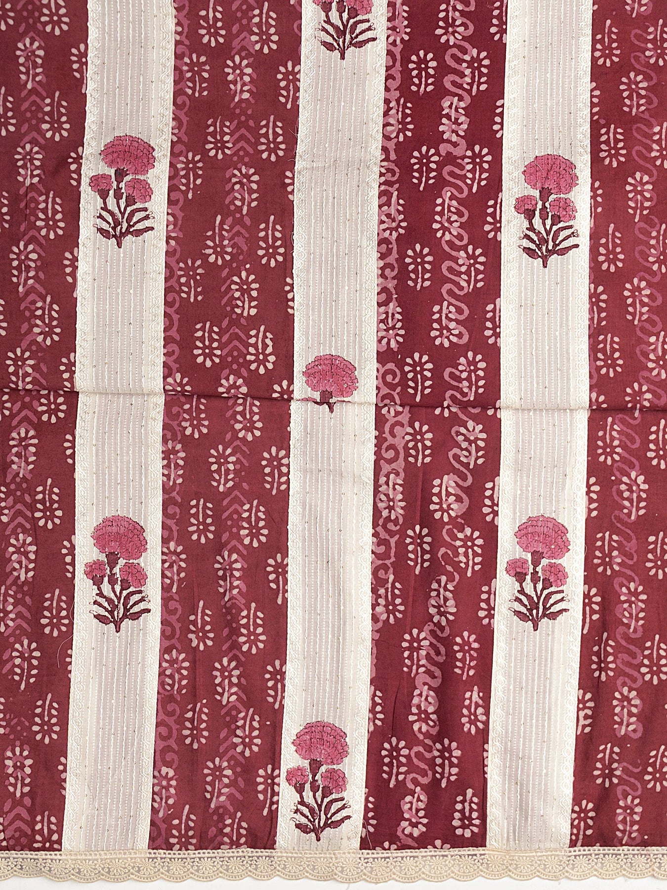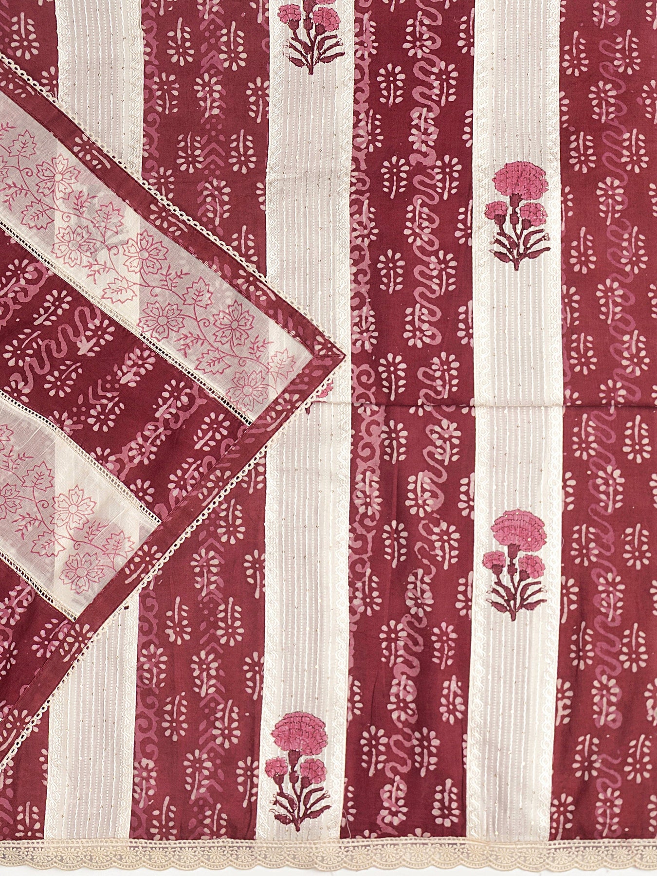 Brown Floral Printed Cotton Dress Material With Dupatta