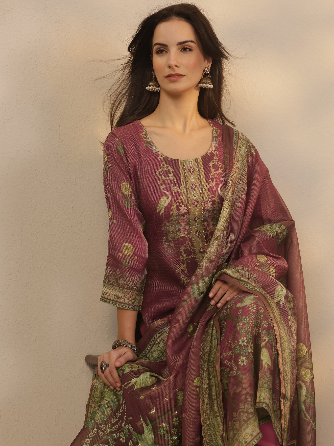 Brown Printed Silk Blend Straight Suit Set With Dupatta