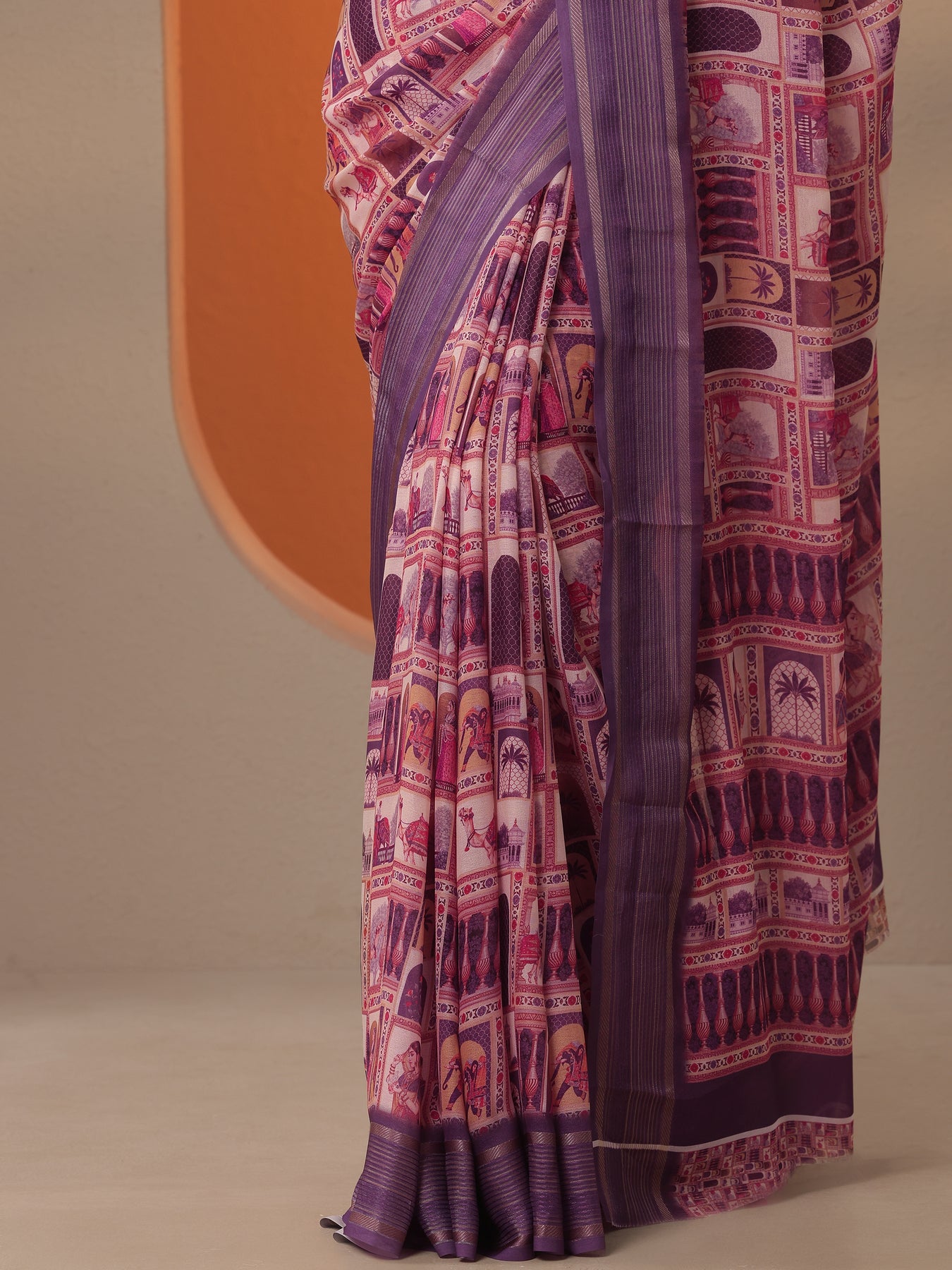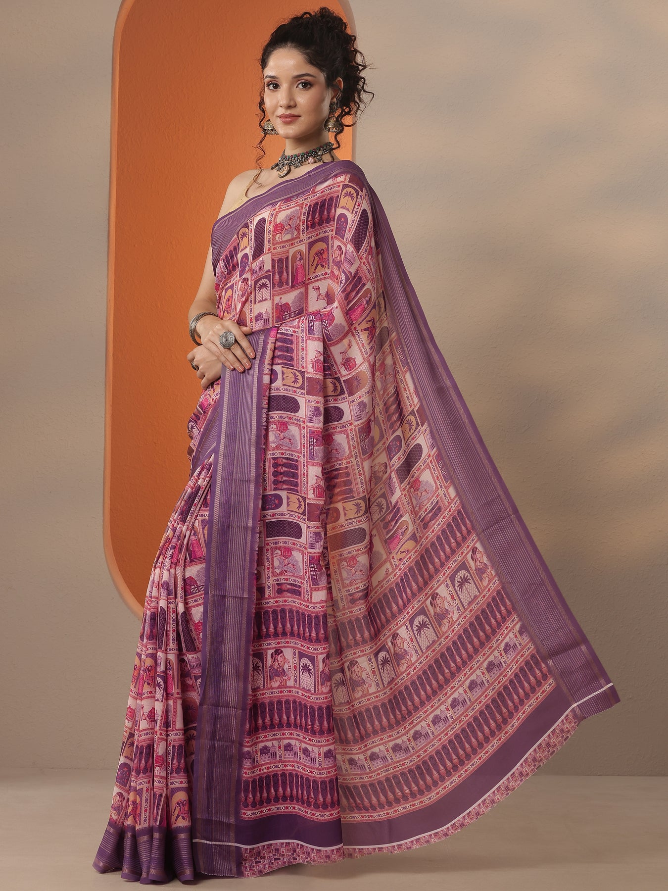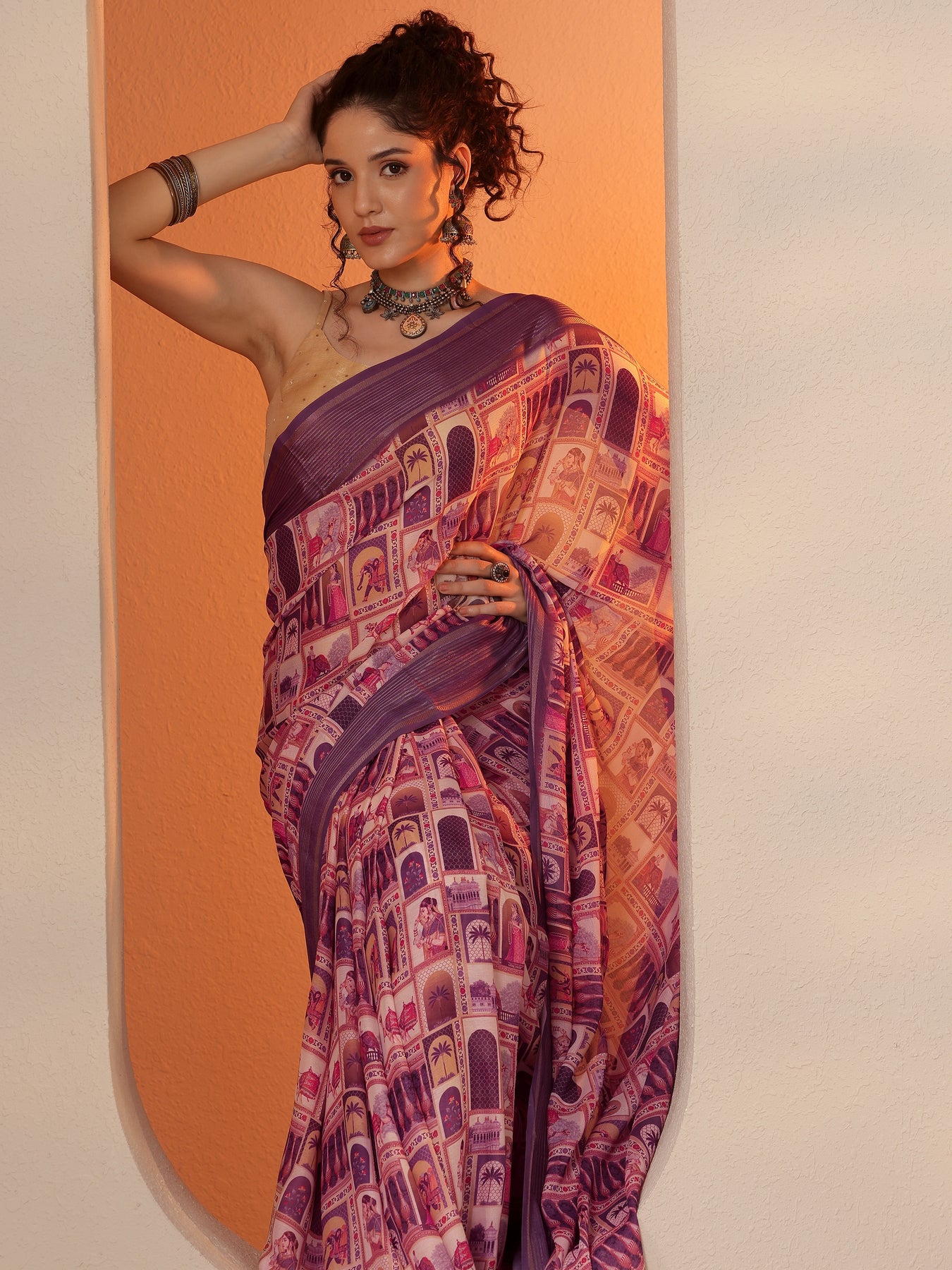 Coral Tribal Printed Georgette Saree With Unstitched Blouse Piece