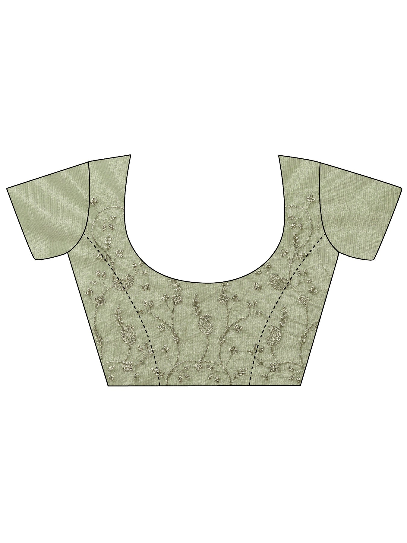 Green Embellished Nylon Saree With Unstitched Blouse Piece