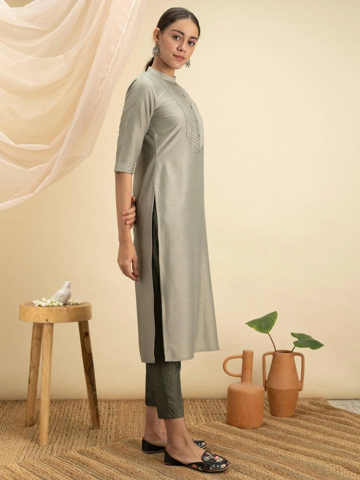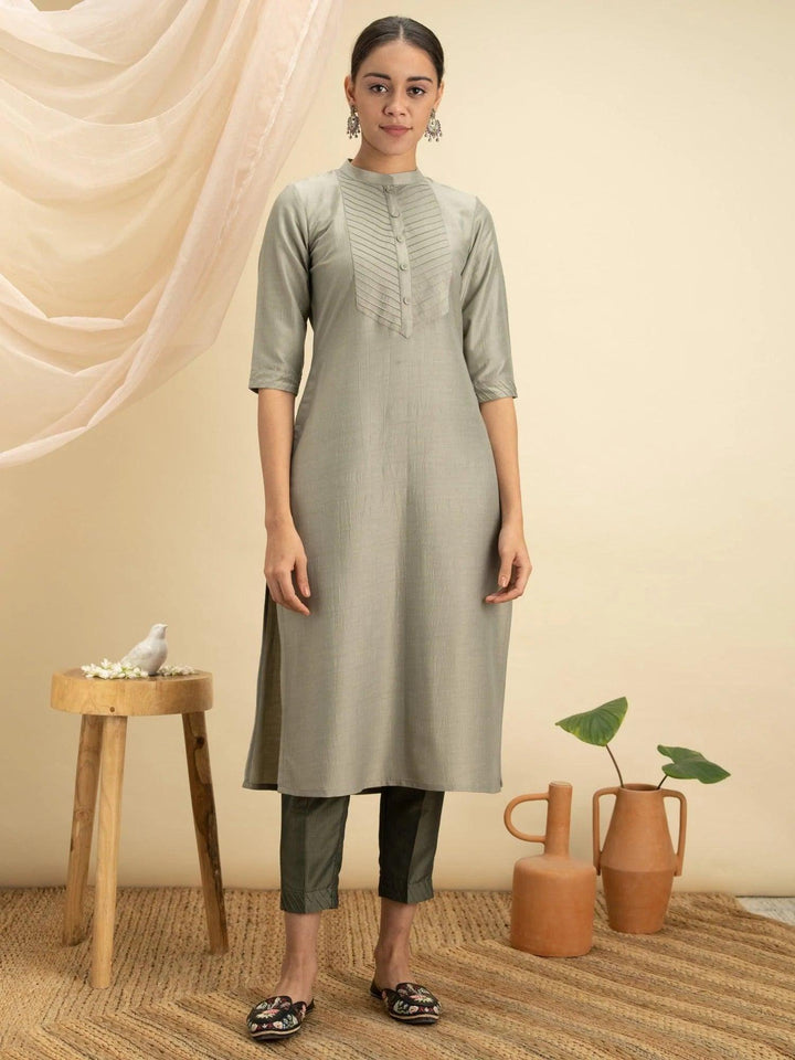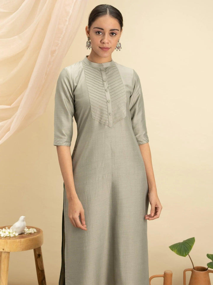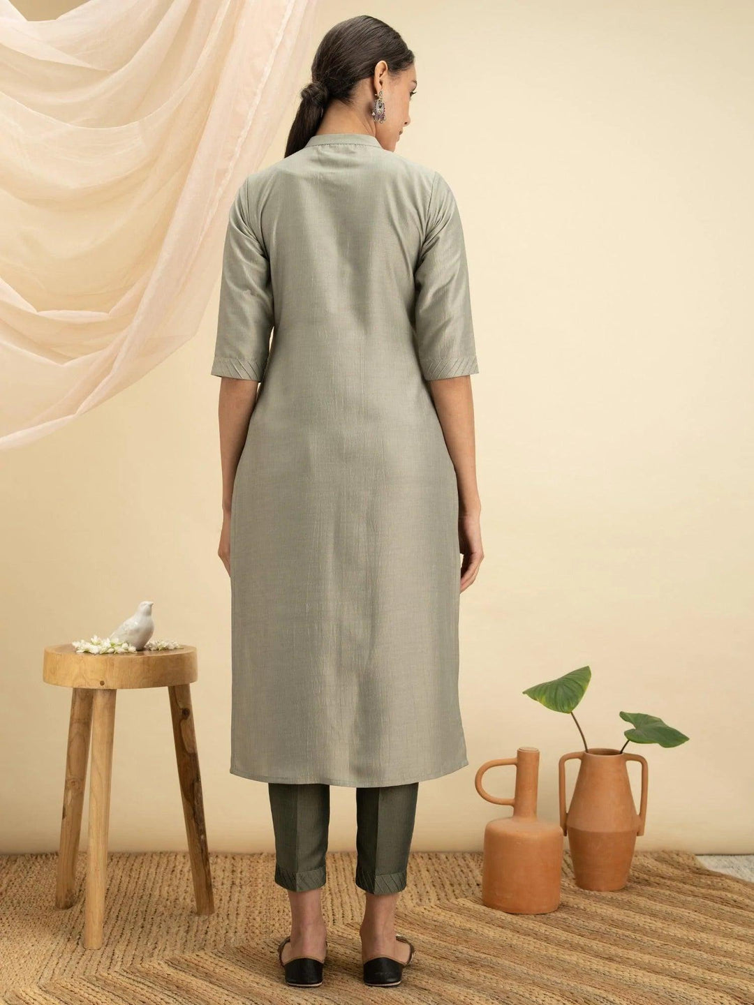 Buy Green Solid Silk Kurta - 12017O-XS | Libas Ethnic Wear Online