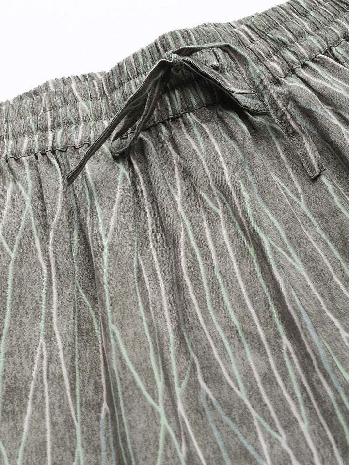 Our grey silk abstract print palazzo pants feature an elasticated waistband with adjustable drawstrings and roomy pockets. This refreshing style is perfect for casual outings.