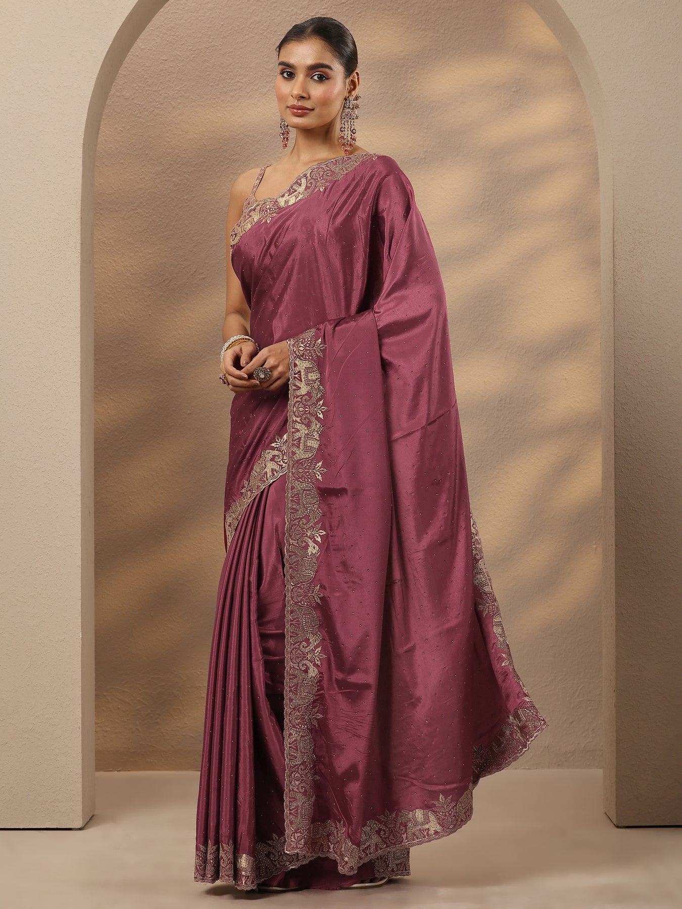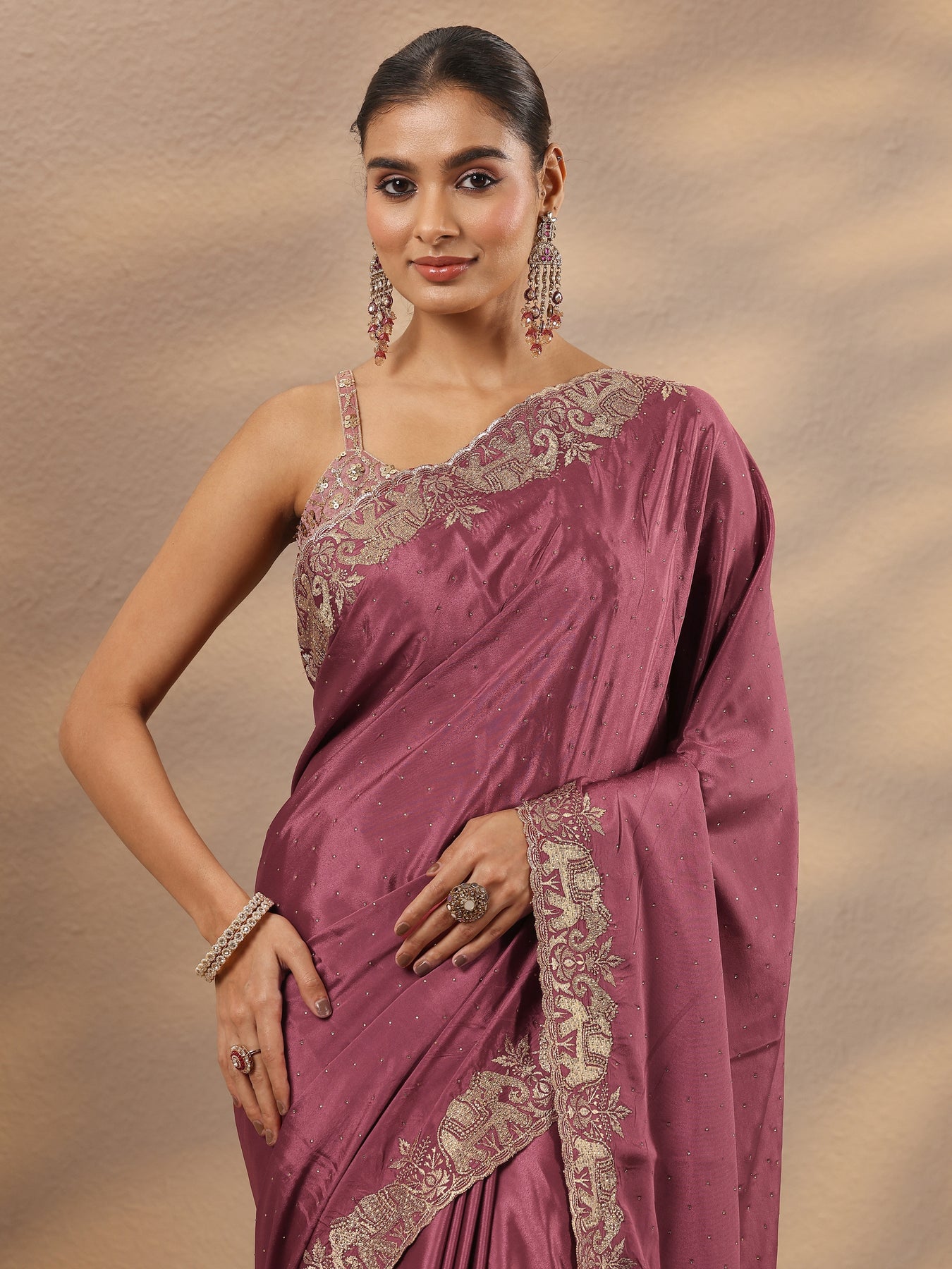 Mauve Embellished Silk Blend Saree With Unstitched Blouse Piece