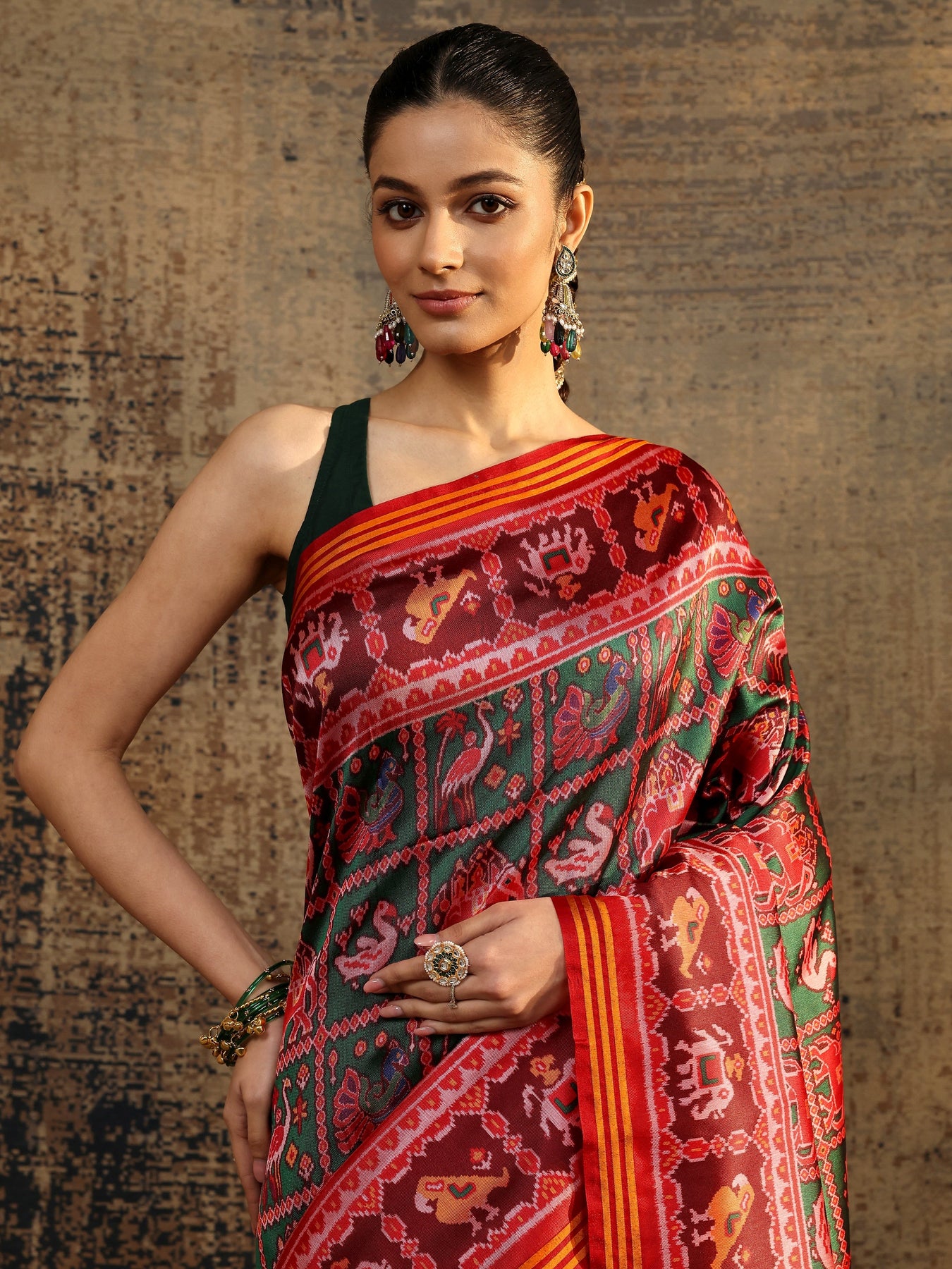 Multi Tribal Printed Silk Saree With Unstitched Blouse Piece