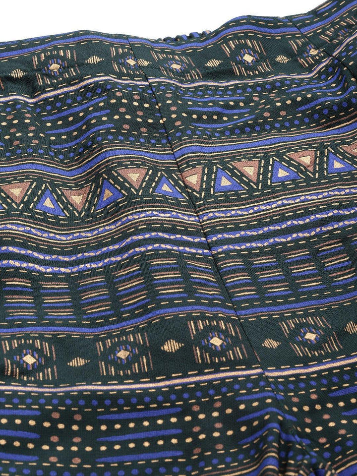 Our multicoloured rayon abstract print palazzo pants feature a partially elasticated waistband with adjustable drawstrings and roomy pockets. This refreshing style is perfect for casual outings.