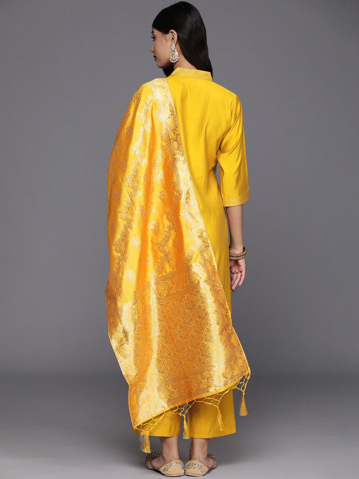 Mustard Solid Silk Blend Straight Suit With Dupatta