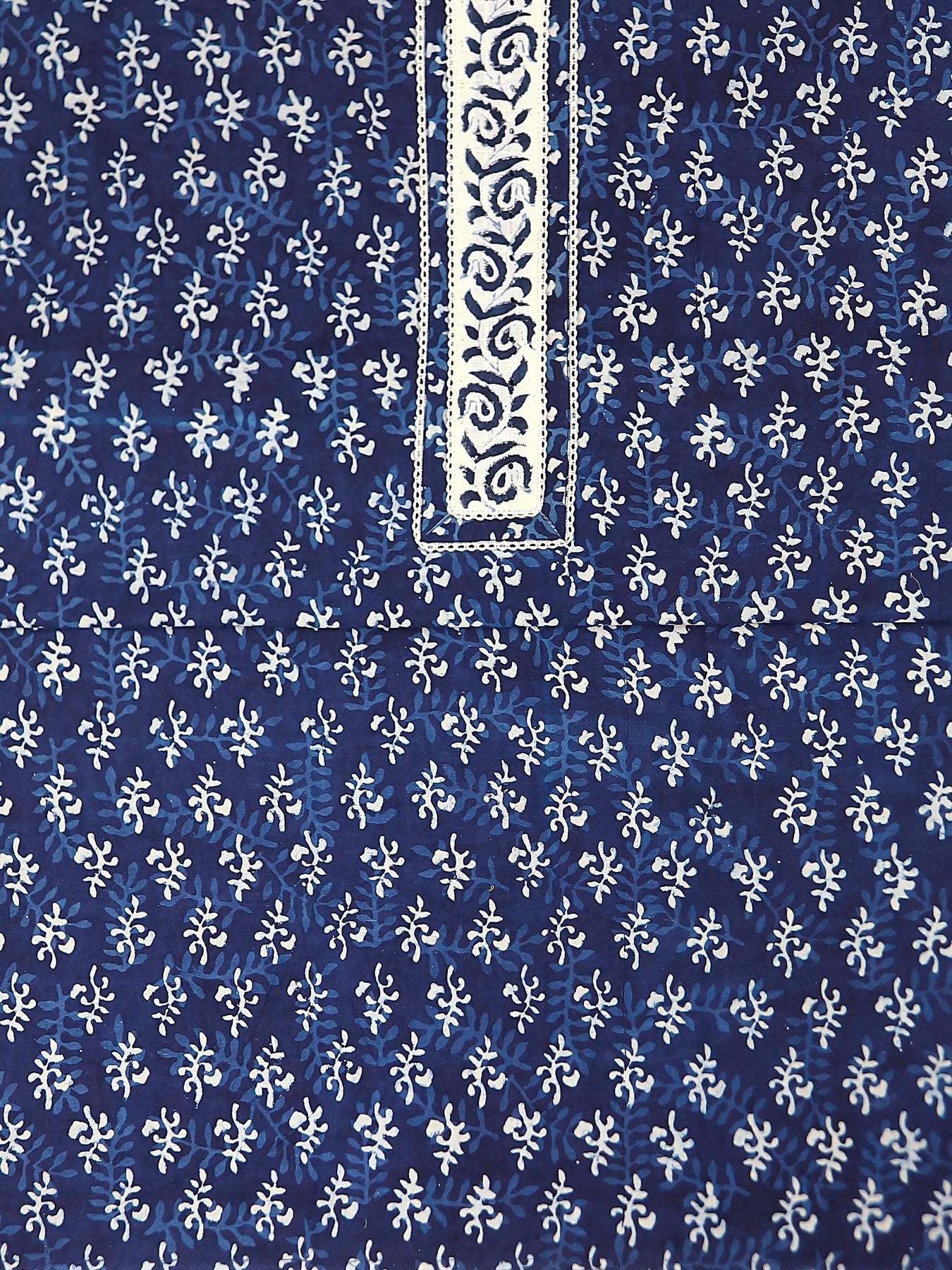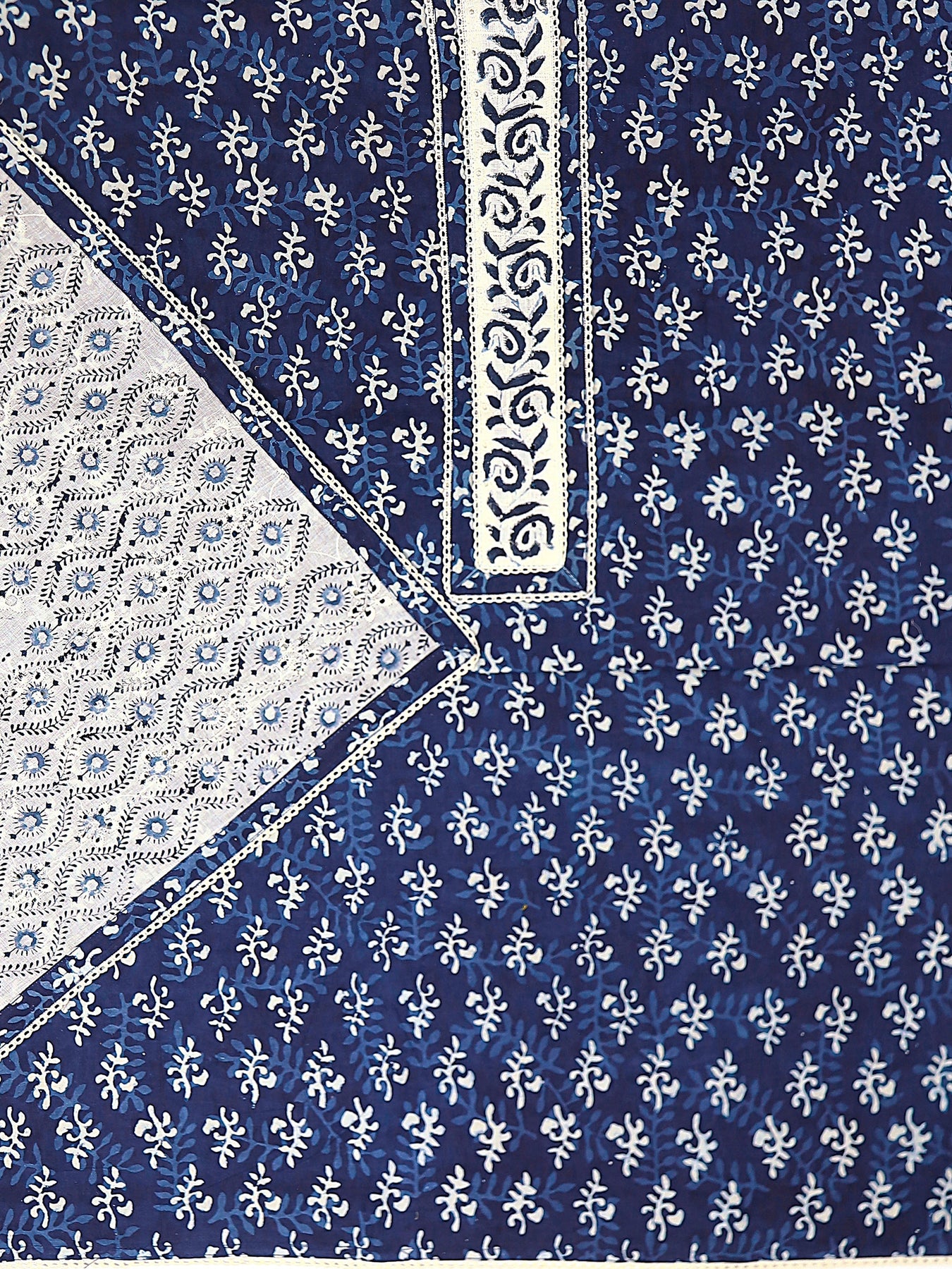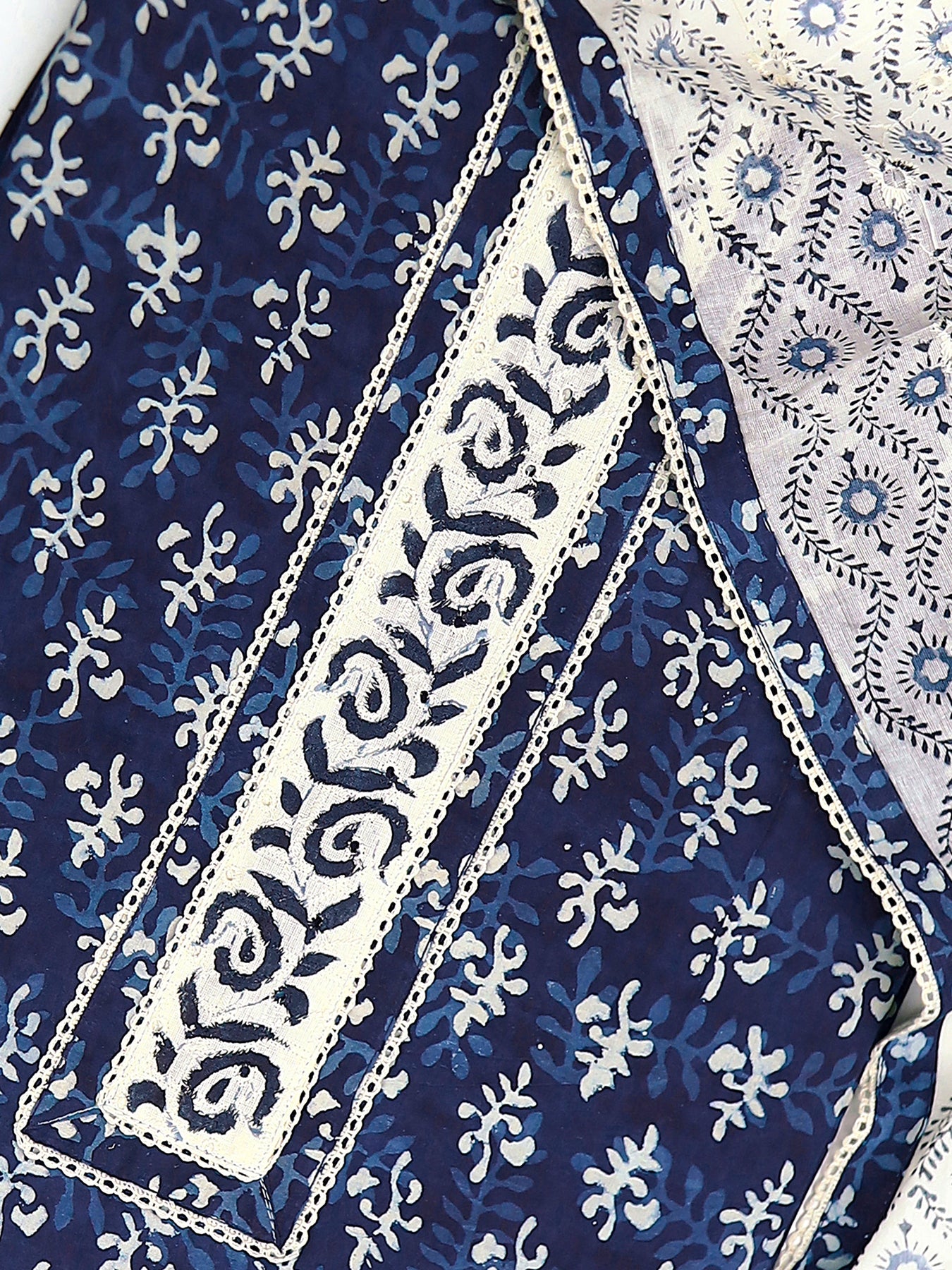Navy Blue Ethnic Motif Printed Cotton Dress Material With Dupatta