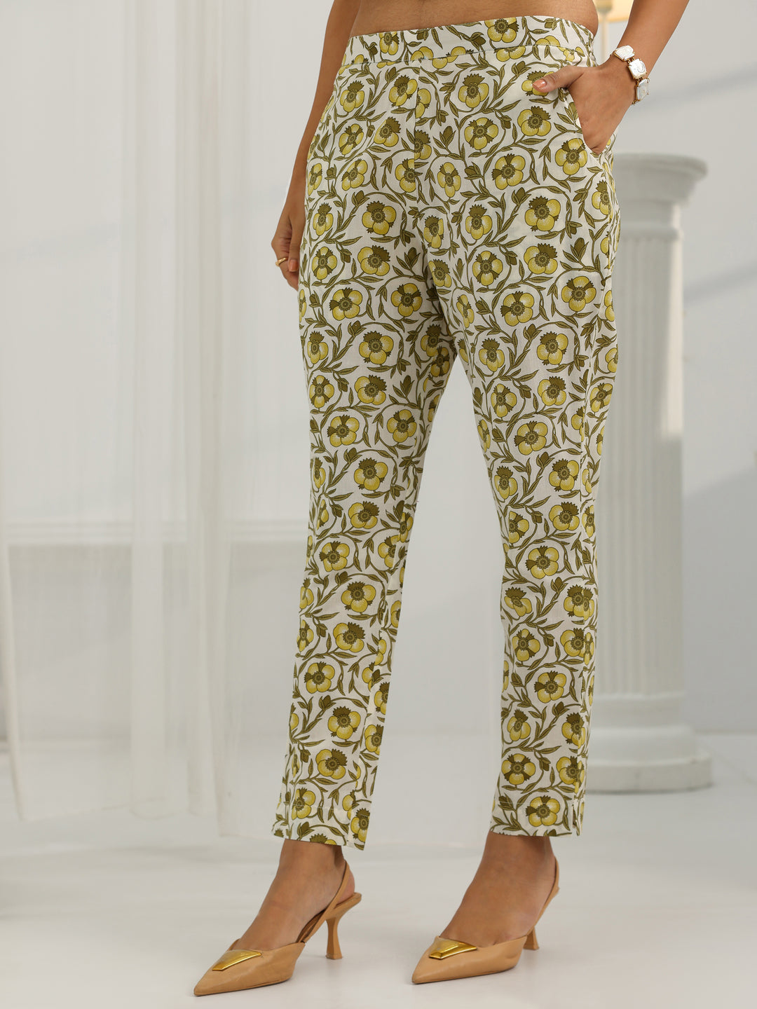 Off White Printed Cotton Straight Suit Set With Dupatta