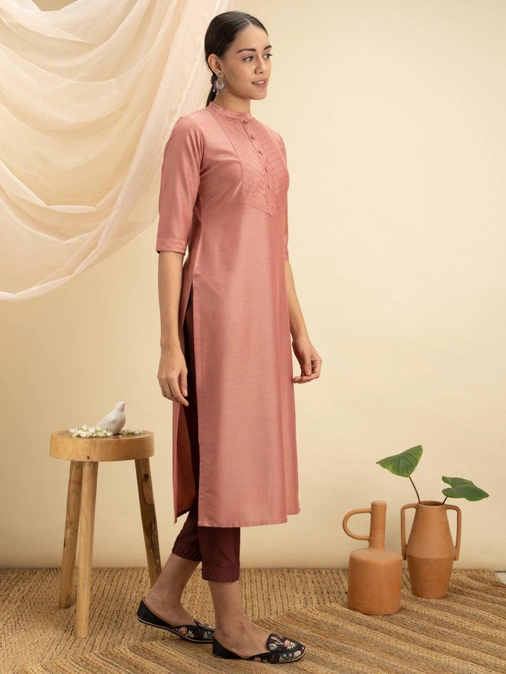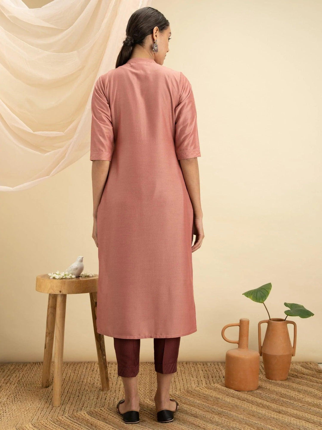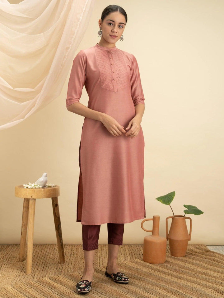 Peach Solid Silk Kurta - ShopLibas