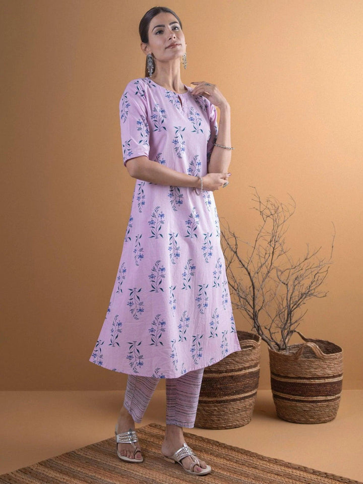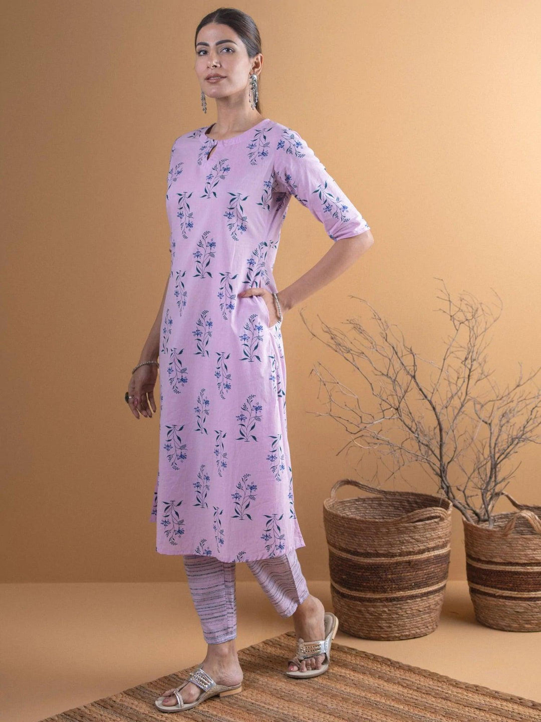 Look equal parts classic and current in this purple ethnic set from Libas. The kurta is adorned with blue floral printed pattern all over, it comes with a matching stripped trousers featuring partially elasticated waistband, two side pockets and slip-on closure. Style this set with a pair of heels for a beautifully balanced look.